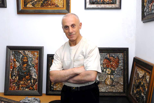 "На каждую работу уходит, как минимум, по четыре-пять месяцев труда. К каждой работе подбираю определенный тип морских или речных камней, иногда использую ракушки. Причем, никогда работы не покрываю краской - все цвета естественные. Создаю контуры на тонкой фанере и приклеиваю эти камни, которые собираю на берегу Каспийского моря и в регионах страны. У каждого камня не только свой цвет, но и своя аура - теплая и холодная, притягивающая и отталкивающая, и поэтому для каждой работы приходится тщательно подбирать материалы не только по форме и цвету, но и соответствию создаваемого образа", - говорит художник.