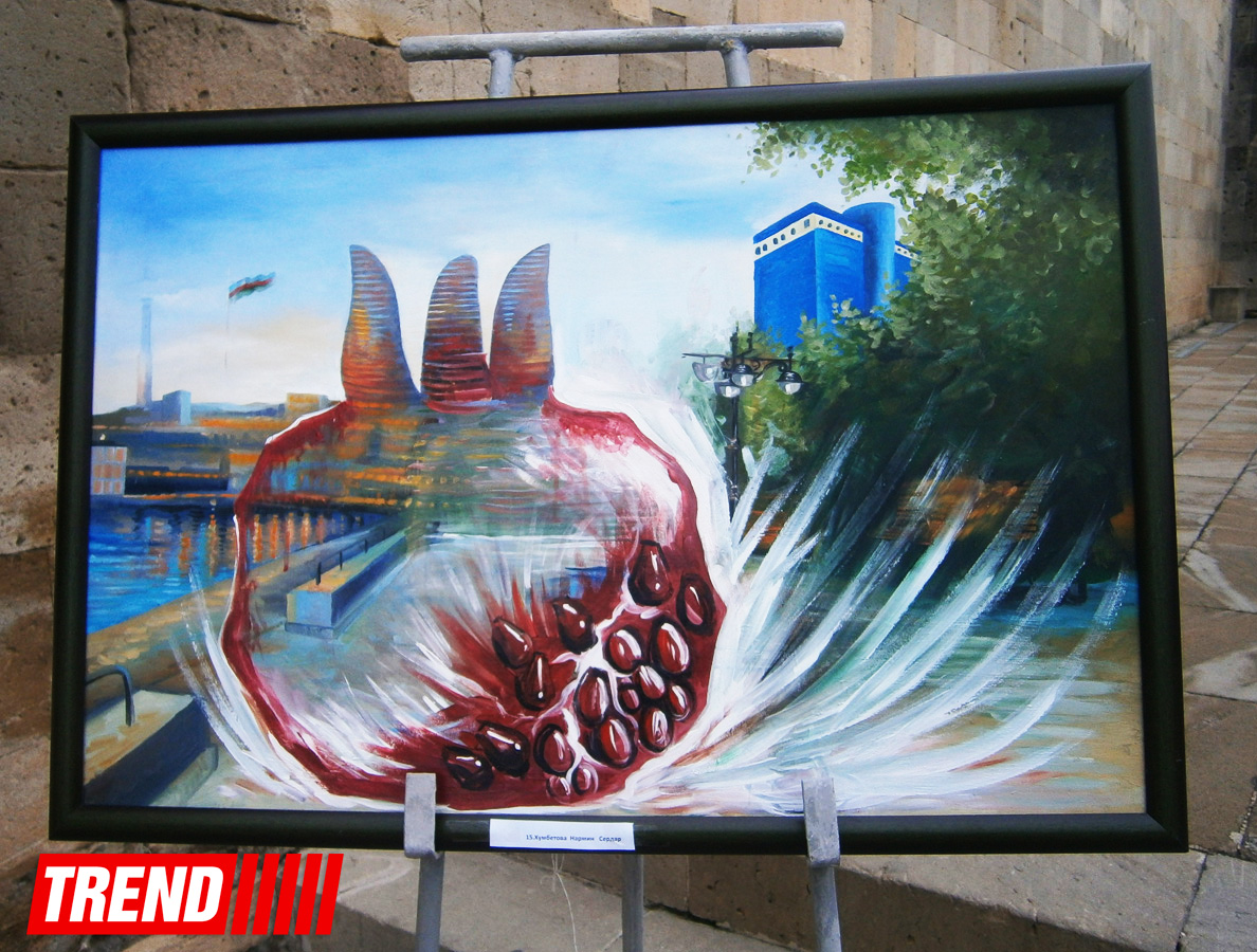 Экспозиция приурочена к предстоящему Празднику граната, который ежегодно отмечается в Азербайджане. Выставка организована молодежным творческим клубом "Созвездие" при Российском информационно-культурном центре (РИКЦ) в Баку.