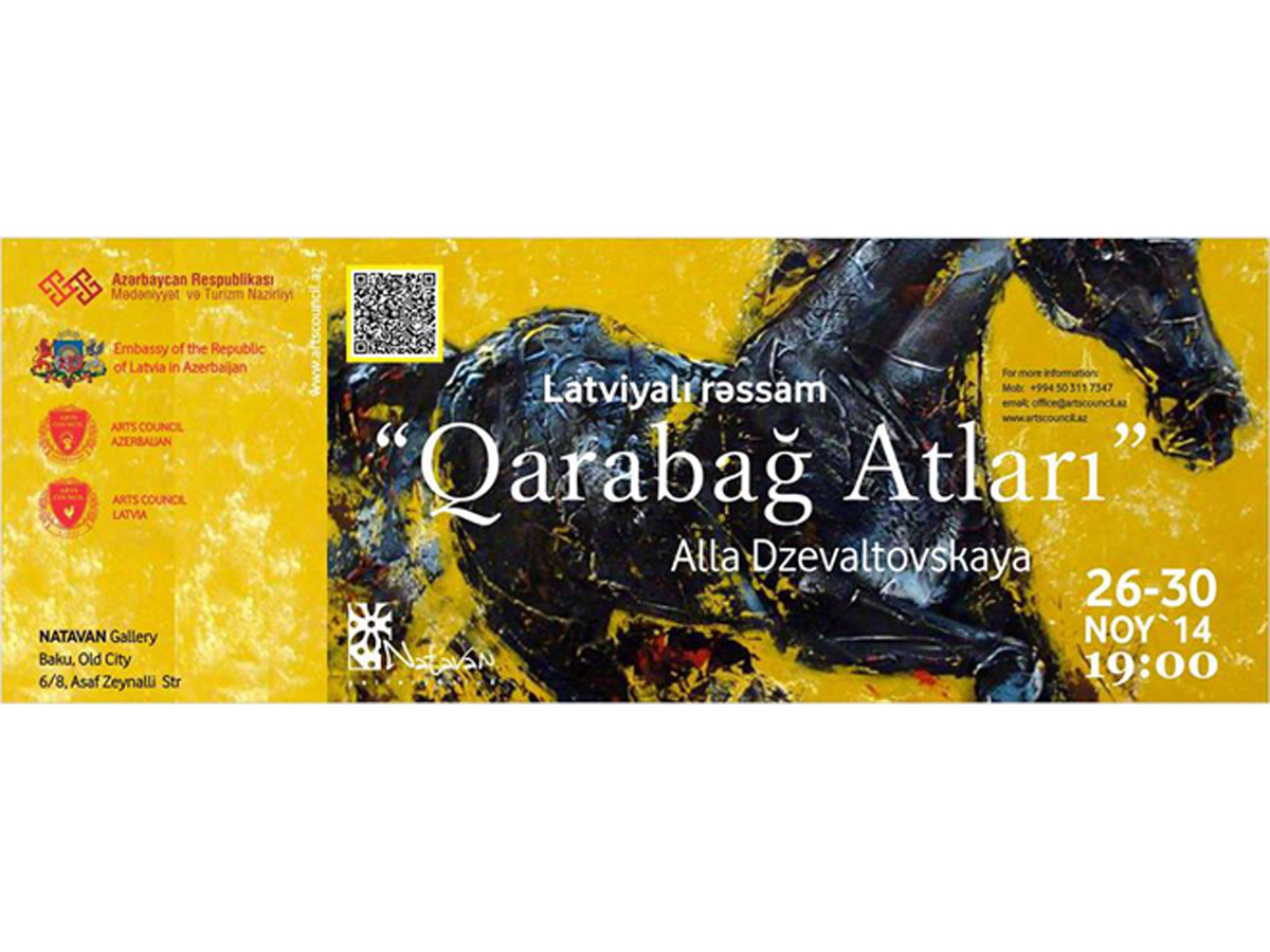БАКУ /Trend Life/ - В 19:00 26 ноября в галерее "Natavan" в Баку состоится открытие выставки известной латвийской художницы Аллы Дзевалтовской "Карабахские скакуны", сообщили Trend Life организаторы мероприятия.