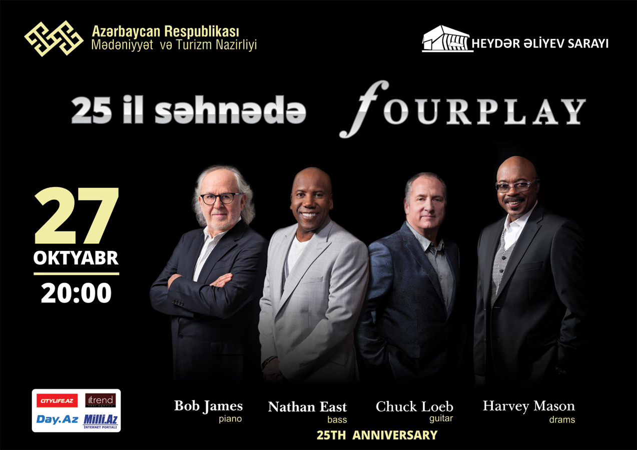 БАКУ /Trend Life/ - В течение более двух десятилетий любители джаза продолжают восхищаться творчеством легендарных американских музыкантов, известных в мире как "Fourplay". Эта великолепная четверка в составе которой Bob James (piano), Nathan East (bass), Chuck Loeb (guitar), Harvey Mason (drams) выступит в Баку 27 октября на сцене Дворца Гейдара Алиева, сообщили Trend Life организаторы концерта.