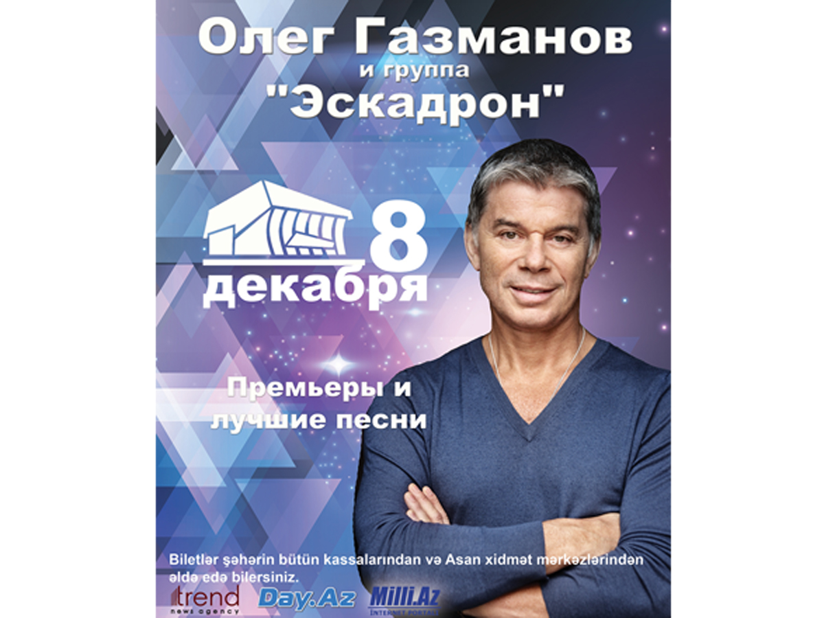В Баку во Дворце Гейдара Алиева 8 декабря пройдет грандиозный концерт известного певца, народного артиста России Олега Газманова и группы "Эскандрон".