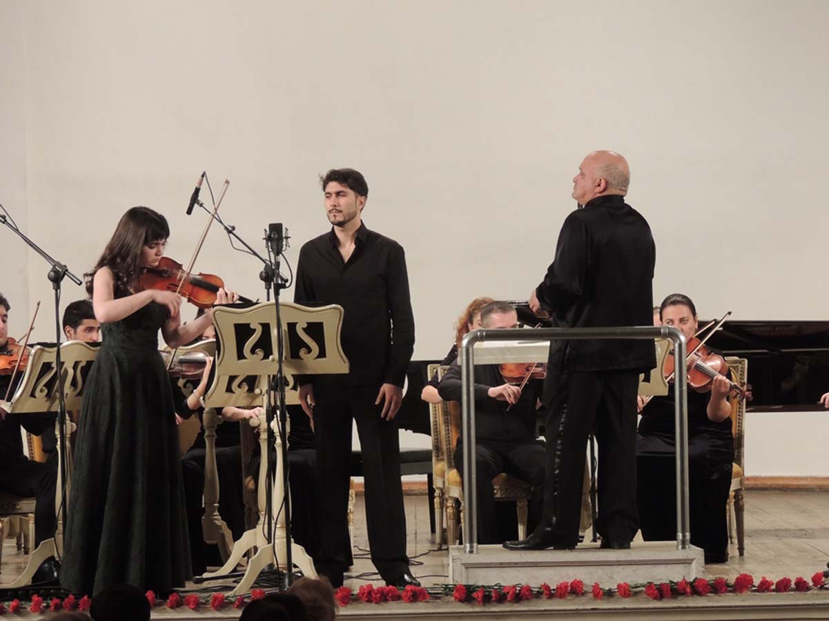В исполнении скрипача Руслана Дашдемирли прозвучало произведение Франческо Верачини "Ларго" и Асафа Зейналлы "Мугамсайягы", а скрипачка Умуда Аббасова исполнила композиции Томазо Альбинони/Ремо Чатсотто "Адажи" и "Мечты Комде" из балета Арифа Меликова "Поэма двух сердец".