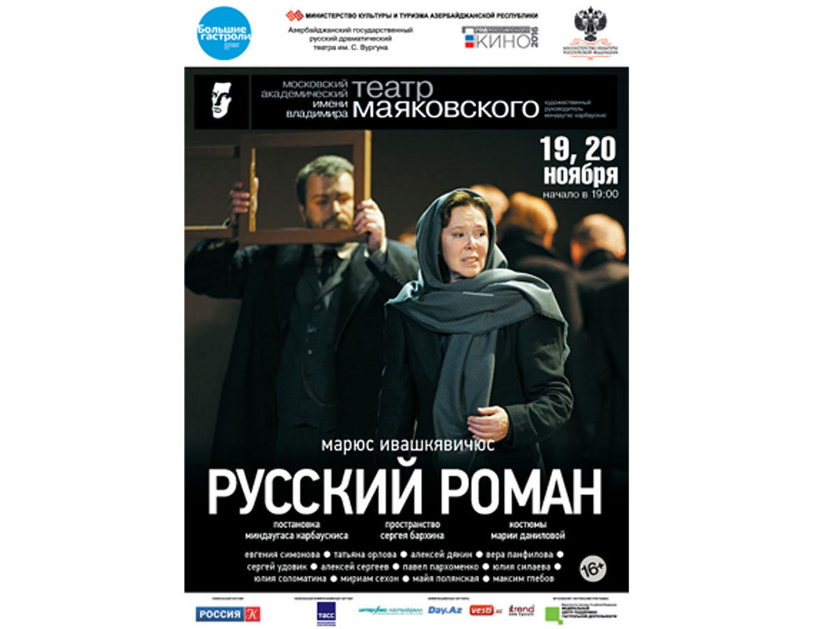 Коллектив Московского академического театра имени Владимира Маяковского готовится представить в Баку два спектакля: 17 и 18 ноября – "Женитьба", 19 и 20 ноября – "Русский роман".