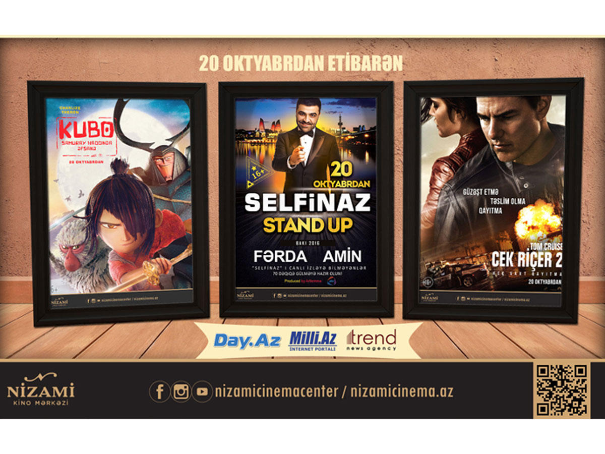 БАКУ /Trend Life/ - В Киноцентре "Низами" в Баку с 20 октября начался показ фильмов производства США "Кубо. Легенда о самурае", "Джек Ричер 2: Никогда не возвращайся", а также stand up проекта Ферды Амина "Селфиназ", сообщили Trend Life в пресс-службе Киноцентра.