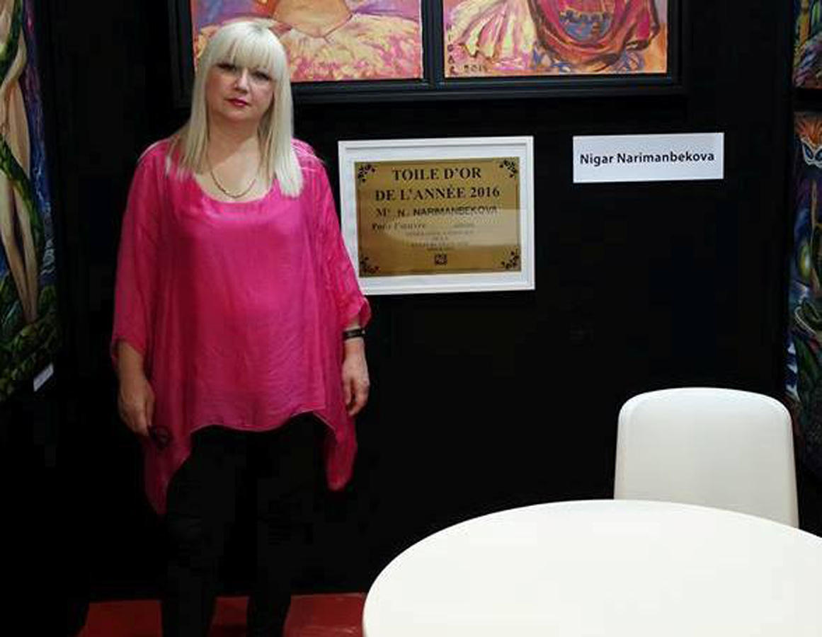 На выставке "Салон бизнес-арт-2015" в Центре Пьера Кардена в Париже Нигяр Нариманбекова была удостоена Гран-при "За высокие достижения в современном изобразительном искусстве".