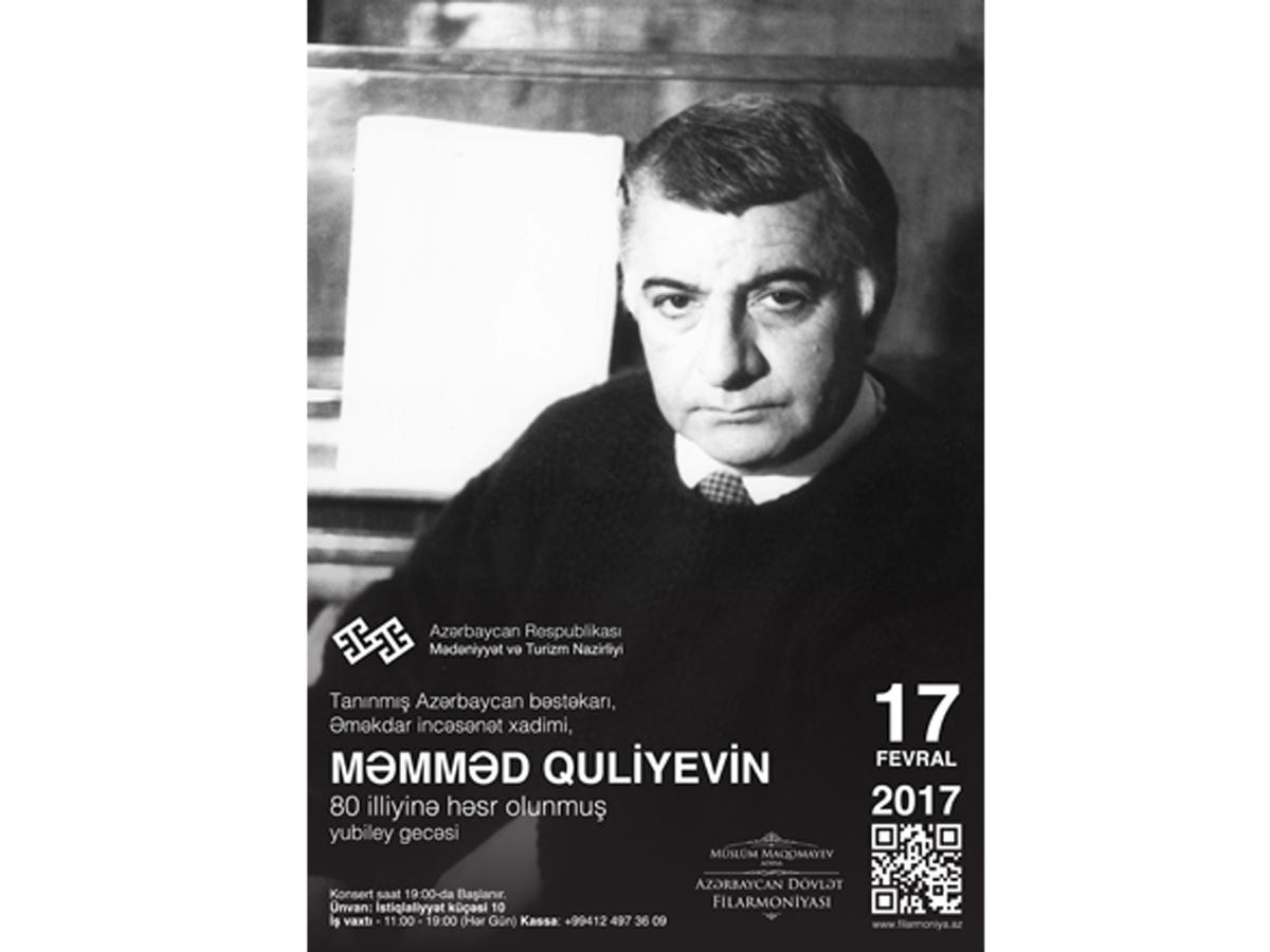 БАКУ /Trend Life/ - В Азербайджанской государственной филармонии имени Муслима Магомаева в Баку 17 февраля в 19.00 состоится концерт, посвященный 80-летию со дня рождения известного композитора, заслуженного деятеля искусств Мамеда Гулиева, сообщили Trend Life в пресс-службе филармонии.