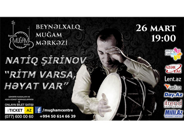 БАКУ /Trend Life/ - В Баку, в Международном центре мугама, 26 марта в 19.00, пройдет концерт ритм-группы "Натиг" под управлением заслуженного артиста Азербайджана Натига Ширинова, сообщили Trend Life в пресс-службе центра. Концерт будет проходить под названием "Ritm varsa, Həyat var" ("Если есть ритм, значит, есть жизнь").
