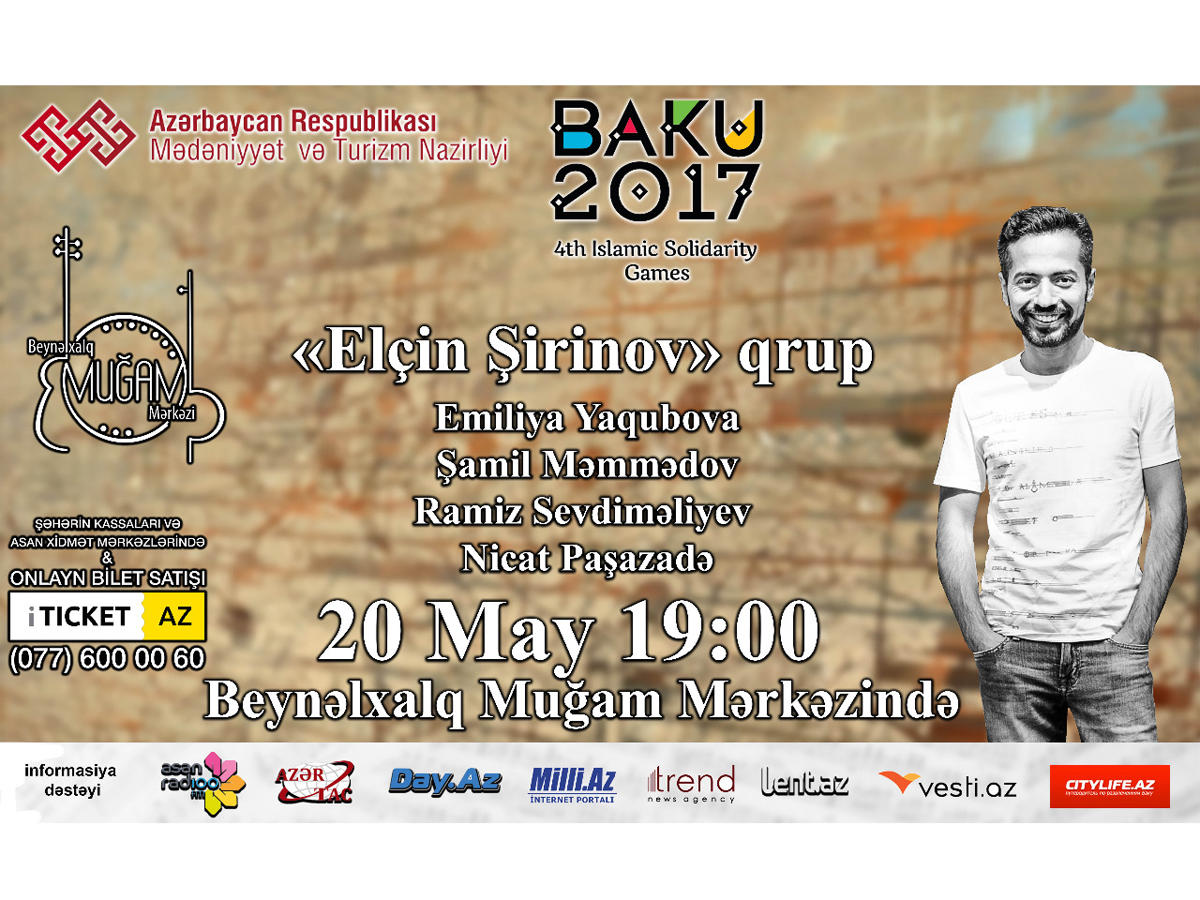 БАКУ /Trend Life/ - В Баку в Международном центре мугама, 20 мая в 19.00, состоится концерт группы пианиста Эльчина Ширинова, в состав которой входят Эмилия Ягубова, Шамиль Мамедов, Рамиз Севдималиев и Ниджат Пашазаде, сообщили Trend Life в пресс-службе центра. Концерт посвящен IV Играм исламской солидарности Баку-2017.