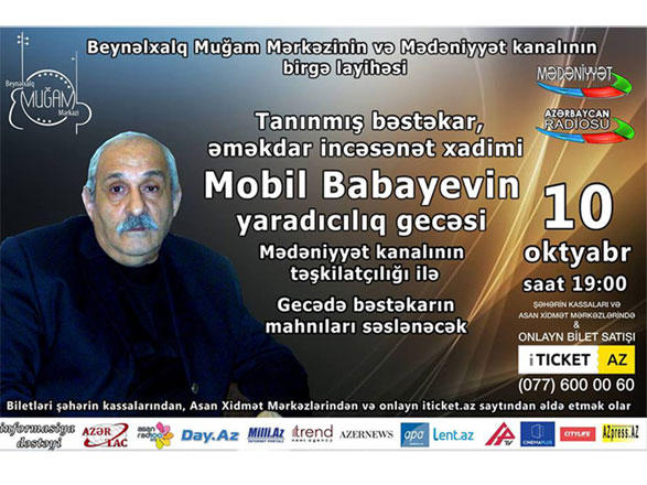БАКУ /Trend Life/ - В Международном центре мугама в 19:00 10 октября состоится творческий вечер известного композитора, заслуженного деятеля искусств Мобиля Бабаева, сообщили Trend Life организаторы вечера.