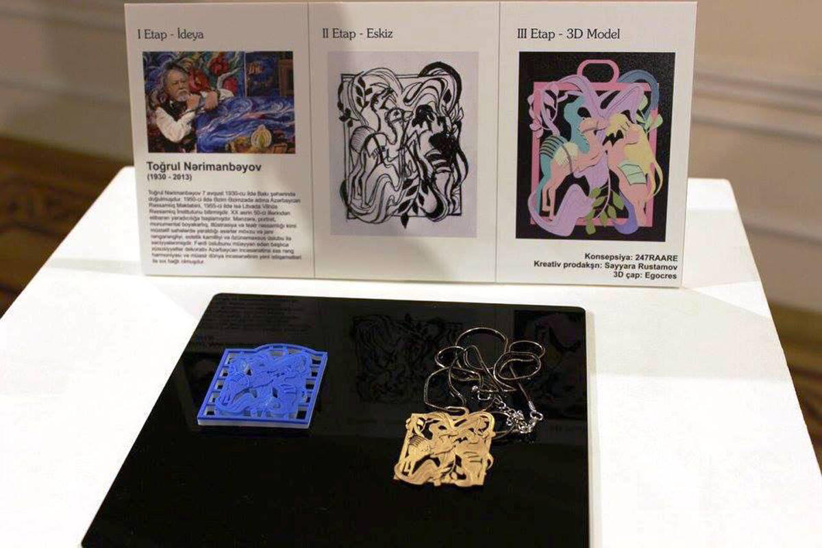 Подобная выставка впервые прошла в Азербайджане. Проект призван пропагандировать культуру и искусство Азербайджана, а также подчеркнуть открытость страны к инновационным технологиям и 3D индустрии в целом. В экспозиции были представлены семь произведений известных азербайджанских художников XX века в интерпретации инновационных технологий. В зале были представлены экспонаты известных мастеров кисти, таких как Таир Салахов, Тогрул Нариманбеков, Саттар Бахлулзаде, Азим Азимзаде, Фаиг Ахмедов, Марал Рахманзаде и Расим Бабаев. Рядом с их полотнами были представлены ювелирные украшения, исполненные в присущей художникам манере, напечатанные на специальном 3D принтере.