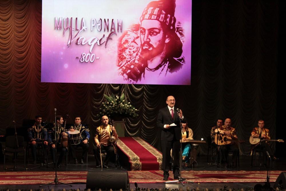 На открытии вечера министр культуры и туризма Абульфас Гараев отметил, что включение имени Моллы Панаха Вагифа в "Программу юбилеев выдающихся личностей и знаменательных событий на 2016-2017 годы" ЮНЕСКО является свидетельством высокой оценки гуманистических ценностей в творчестве выдающегося мастера слова, оставившего неизгладимый след в истории богатой многовековой литературы Азербайджана. В честь этого знаменательного события было проведено множество мероприятий в стране и за рубежом, выпущены новые издания о жизни и творчестве Моллы Панаха Вагифа. Среди них, книга академика Низами Джафарова "Molla Pənah Vaqif", библиография Национальной библиотеки "Molla Pənah Vaqif", изданная при поддержке TÜRKSOY книга "Molla Pənah Vaqif dünya dillərində".