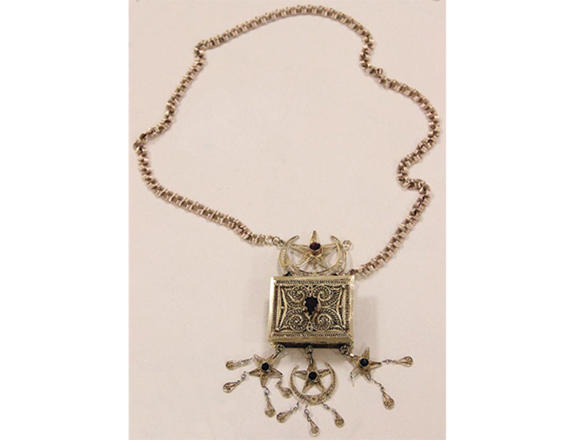 Это – относящаяся к концу XIX - началу XX века обработанная золотом подвеска-футляр "Коран" и золотое ожерелье.
