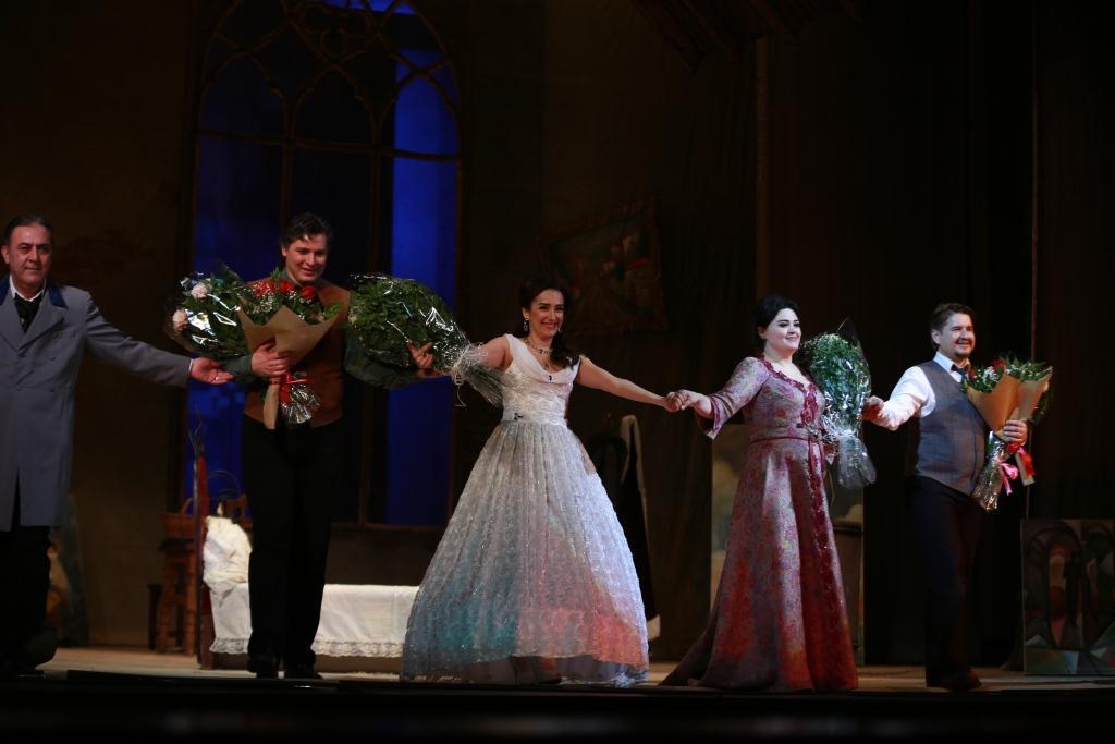 В показе спектакля приняли участие солисты Национального академического Большого театра оперы и балета Республики Беларусь - заслуженный артист Республики Беларусь Владимир Громов (партия Марселя) и лауреат международных конкурсов вокалистов Александр Михнюк (партия Рудольфа). Наряду с ними выступали также ведущие вокалисты театра - народный артист Азербайджана Али Аскеров (партия Альциндора), заслуженные артисты Инара Бабаева (партия Мюзетты), Илаха Эфендиева (партия Мими), Акрам Поладов (партия Коллена), а также солисты Турал Агасиев (партия Шонара), Фирус Мамедов (партия Бенуа).