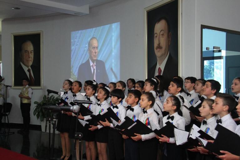 Концертную программу открыл хоровой коллектив детской школы искусств №3, в исполнении которого прозвучало произведение "Ey vətən", посвященное общенациональному лидеру Гейдару Алиеву.