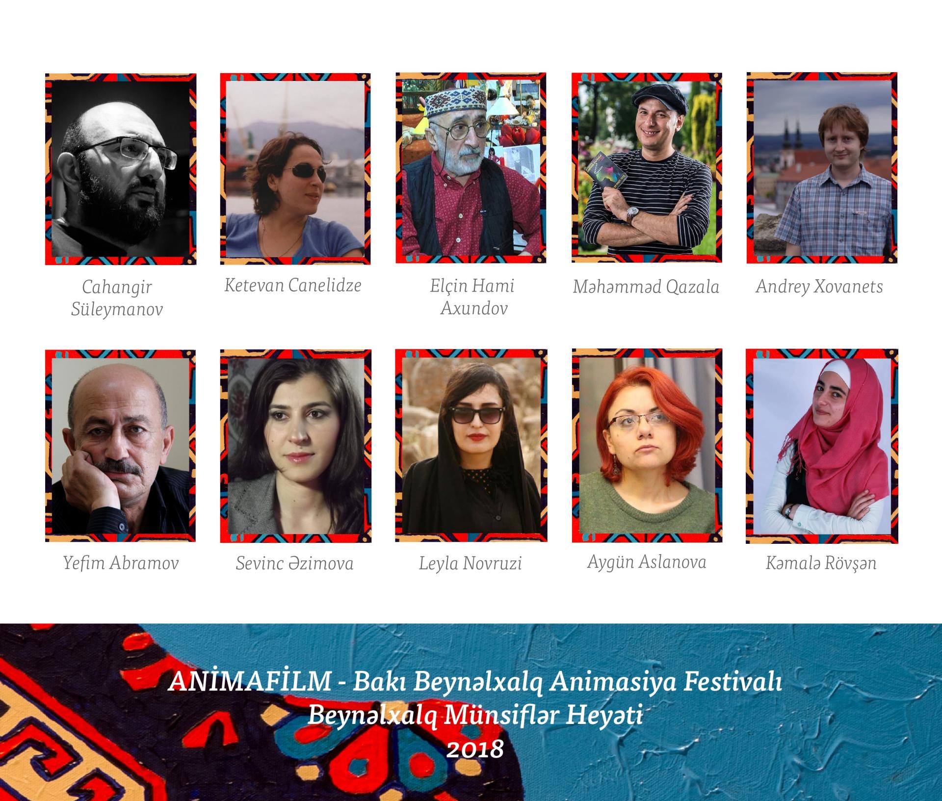 Жюри будет оценивать работы в двух составах: анимационные фильмы – Эльчин Хами Ахундов (Азербайджан), Джахангир Сулейманов (Россия), Кетеван Джанелидзе (Грузия), Мухаммед Газала (Египет), Андрей Хованец (Словакия), сценарии – Ефим Абрамов (Израиль), Лейла Новрузи (Иран), Севиндж Азимова, Айгюн Асланова, Кямаля Ровшан (Азербайджан).