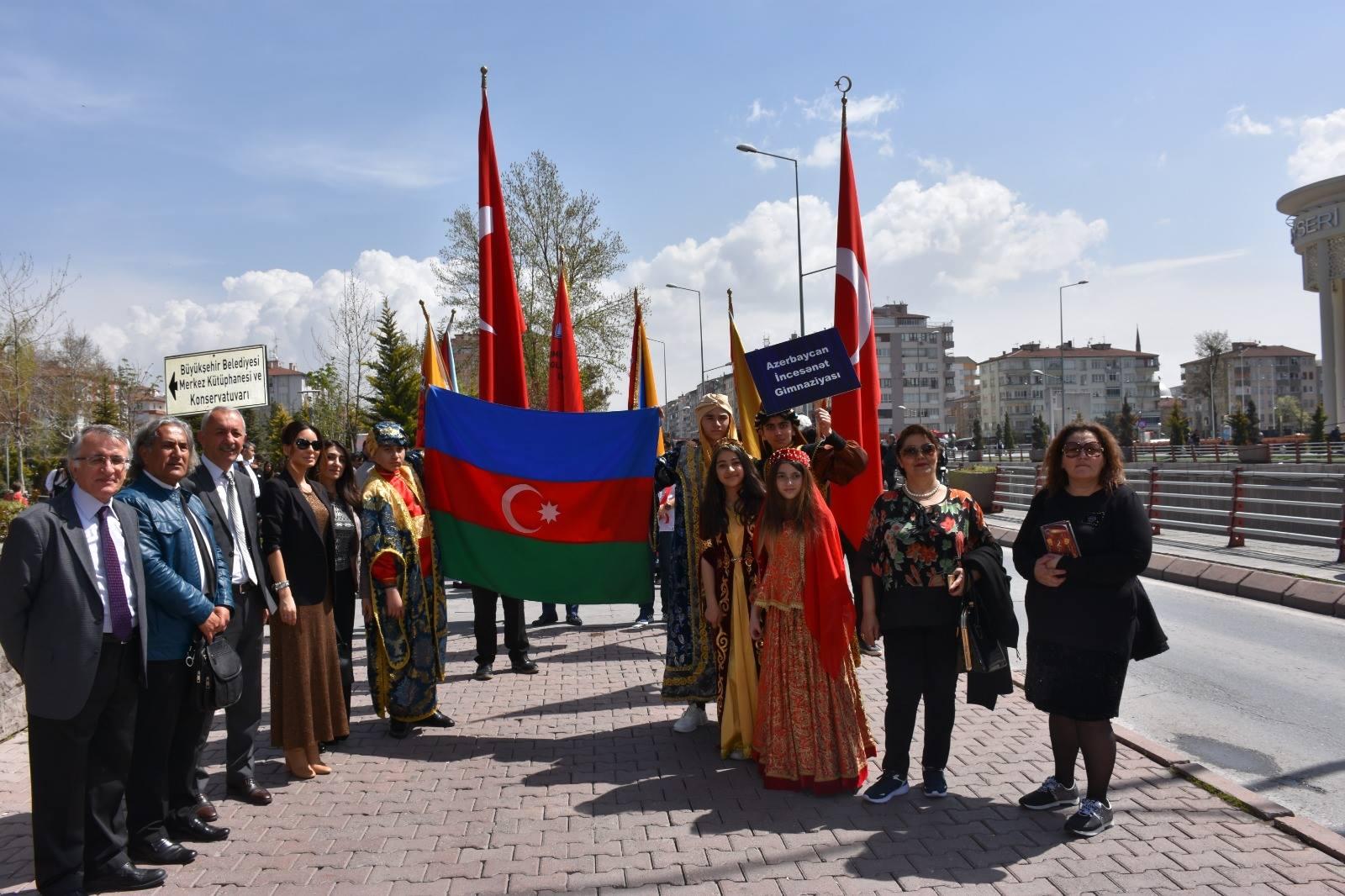 Фестиваль начался шествием по улицам города, затем прошла встреча с главой муниципалитета Кайсери Мемдух Бюйюккылыджем. Художественный руководитель коллектива, художник-декоратор Гюнай Мехтизаде и национальный куратор проекта, директор гимназии Айтян Ахмедова выразили признательность за приглашение и теплый прием, пожелали всем участникам успехов. Мемдух Бюйюккылыдж отметил, что главная цель проекта – выявление и развитие творческих способностей подрастающего покления, налаживание дружественных связей между народами, подчеркнув братские отношения между Турцией и Азербайджаном.