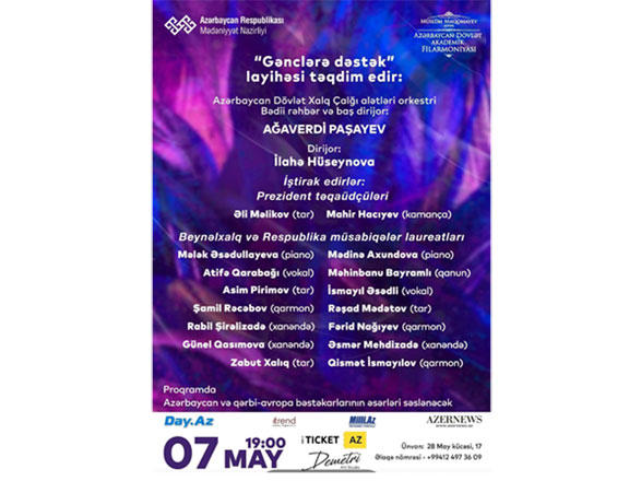На вечере в сопровождении Азербайджанского государственного оркестра народных инструментов под управлением дирижера Илахи Гусейновой выступят молодые музыканты – лауреаты международных и республиканских конкурсов.