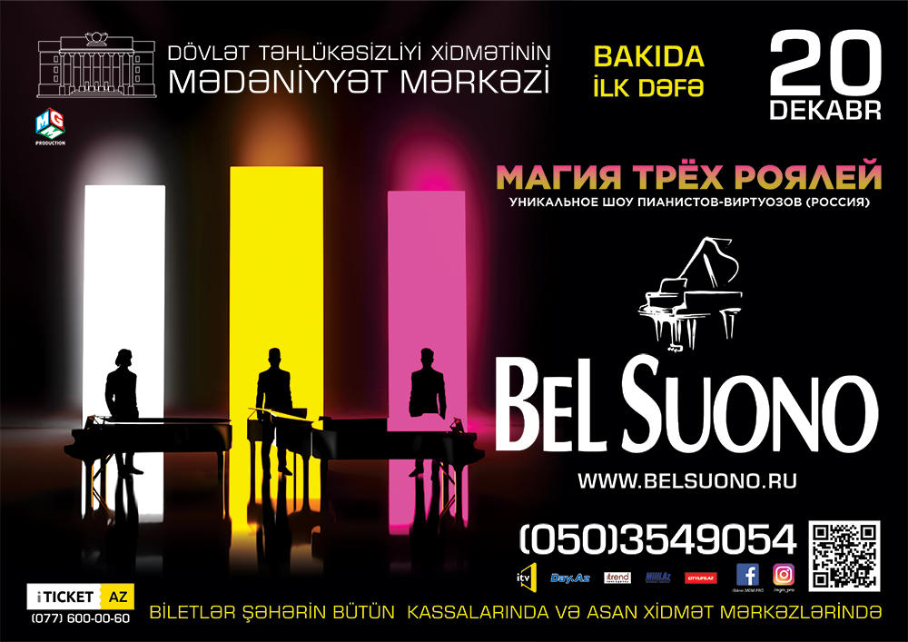 БАКУ /Trend Life/ - В Культурном центре Службы государственной безопасности (СГБ) Азербайджана впервые в Баку, 20 декабря в 19.00, пройдет уникальное шоу пианистов-виртуозов Bel Suono из России "Магия трех королей", организованное MGM Production, сообщает Trend Life.