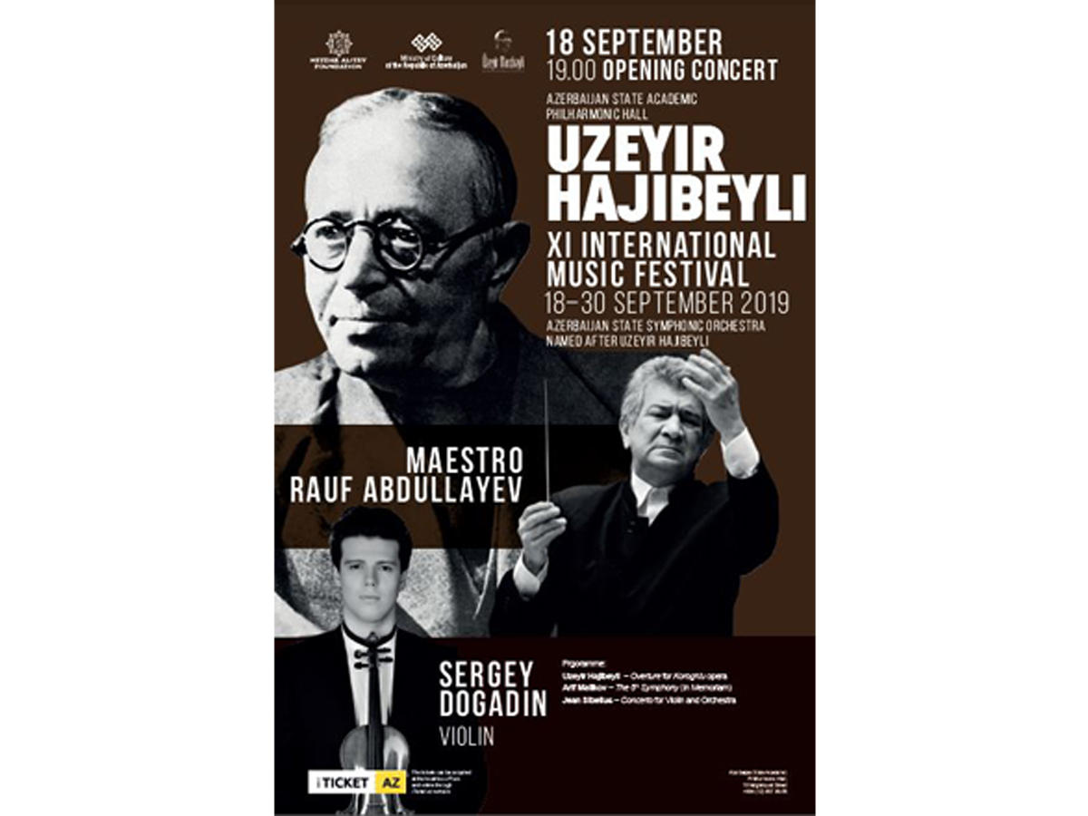 Торжественное открытие фестиваля состоится 18 сентября в 19.00 в Азербайджанской государственной академической филармонии имени Муслима Магомаева в Баку. На вечере выступит Азербайджанский государственный симфонический оркестр имени Узеира Гаджибейли под управлением народного артиста Азербайджана Рауфа Абдуллаева. Солист – российский скрипач Сергей Догадин.