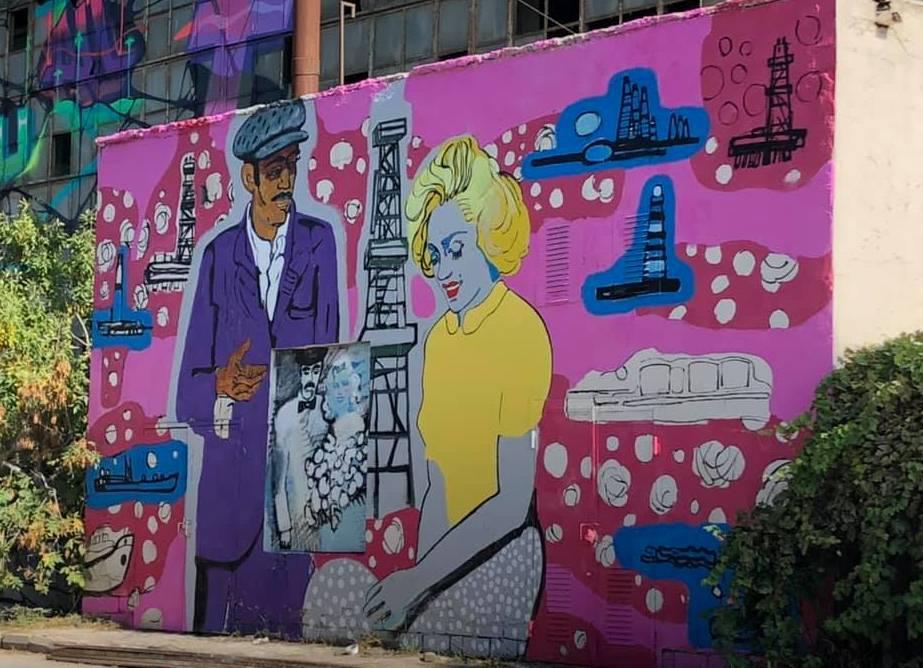 И даже такие оригинальные как "Девушки предпочитают нефтяников" Ирины Эльдаровой. Автор представляет живопись и инсталляции, вдохновением для которых послужило кино 60-х годов и немеркнущий образ Мэрилин Монро. Одно из произведений из серии она даже отразила на здании Бакинского художественно-производственного комбината.