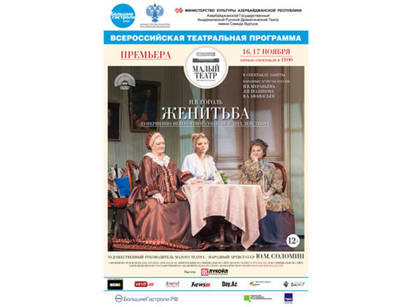 БАКУ /Trend Life/ - На сцене Азербайджанского государственного академического русского драматического театра имени Самеда Вургуна в Баку 16 и 17 ноября состоятся гастроли Государственного академического Малого театра России со спектаклем "Женитьба" по пьесе Николая Гоголя, сообщили Trend Life в пресс-службе театра.