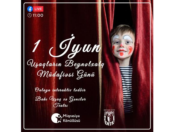 БАКУ/Trend Life/ - Бакинский детский и юношеский театр при Главном Управлении культуры города Баку и Общественное объединение Miqrasiya Könüllüsü проведут онлайн-мероприятие, посвященное Международному дню защиты детей, отмечаемому ежегодно 1 июня, сообщили Trend Life в пресс-службе министерства культуры Азербайджана.