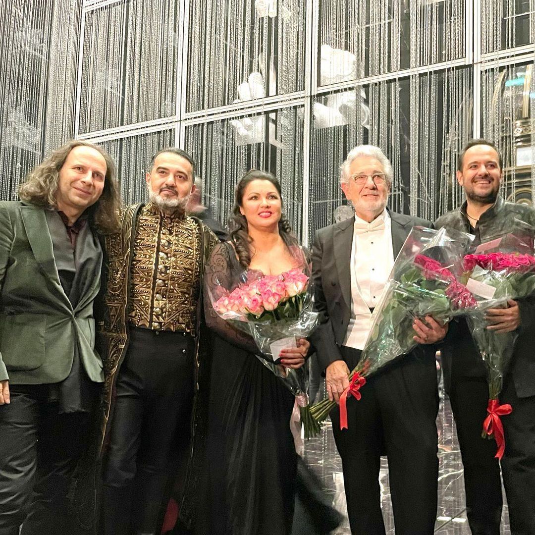 Эльчин Азизов исполнил партию начальника римской полиции Барона Скарпиа, партию главной героини (Флория Тоска) исполнила народная артистка России, оперная дива Анна Нетребко, образ художника Марио Каварадосси воплотил Мурат Карахан. Легендарный Пласидо Доминго выступил в качестве дирижера.