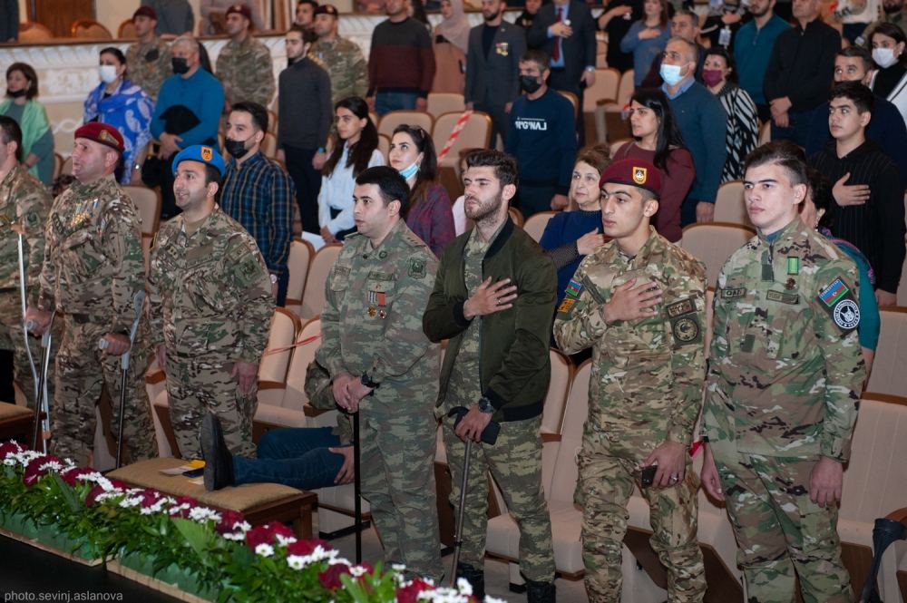 На открытии прозвучал гимн Азербайджана, минутой молчания почтена память шехидов Карабахской войны. Заместитель директора театра Гаджибаба Мамедов рассказал о славной Победе в 44-дневной Отечественной войне, которая навсегда будет вписана в героическую летопись страны. Сотрудники театра, участники Отечественной войны, обладатели боевых медалей Тарлан Аскерли, Руслан Керимов, Даглар Юсиф, Руфат Джаббаров и Фуад Джабраилов рассказали о боевом пути, как громили врага и гнали армянских оккупантов с нашей земли. Героям были преподнесены нагрудные значки и почетные дипломы театра.