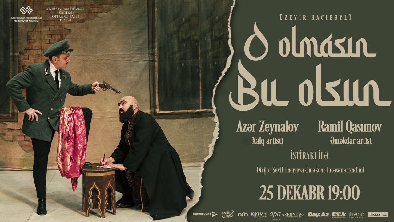 БАКУ /Trend Life/ - В Азербайджанском государственном академическом театре оперы и балета 25 декабря в 19.00 состоится показ спектакля по произведению великого Узеира Гаджибейли "O olmasın, bu olsun" ("Не та, так эта"), сообщает Trend Life. Главные партии исполнят народный артист Азер Зейналов (Мешади Ибад) и заслуженный артист Рамиль Гасымов.