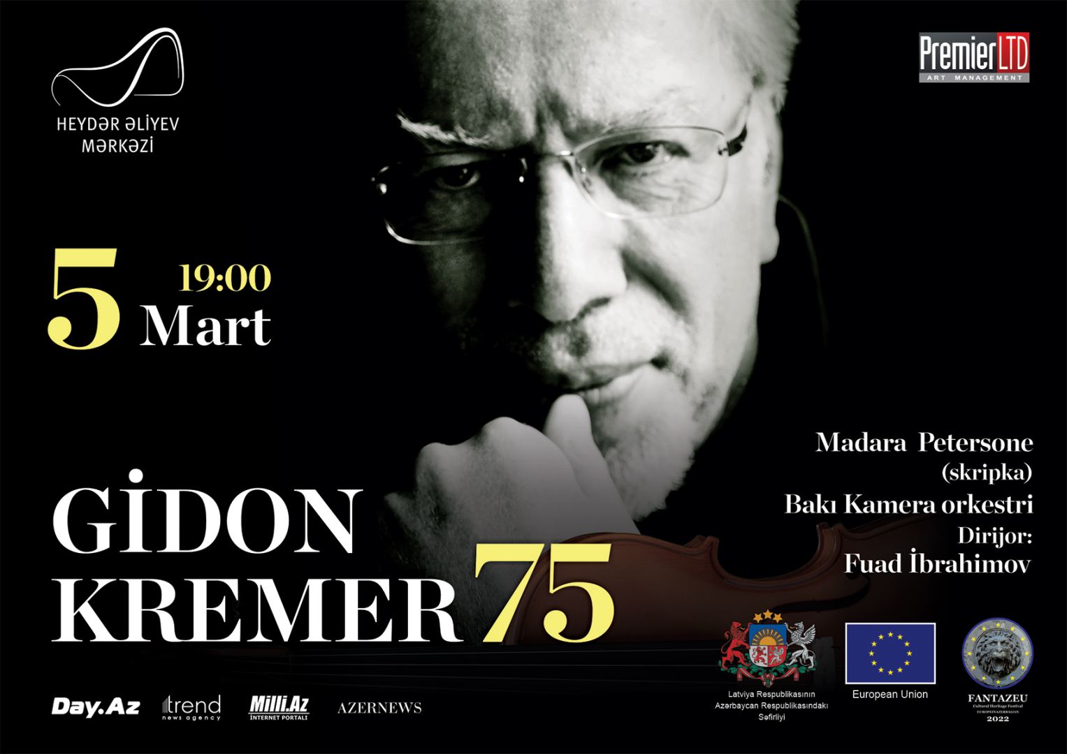 БАКУ /Trend Life/ - В Центре Гейдара Алиева 5 марта состоится концерт, посвященный 75-летию легендарного скрипача и музыкального деятеля современности Гидона Кремера, организованный Premier LTD, сообщает Trend Life.
