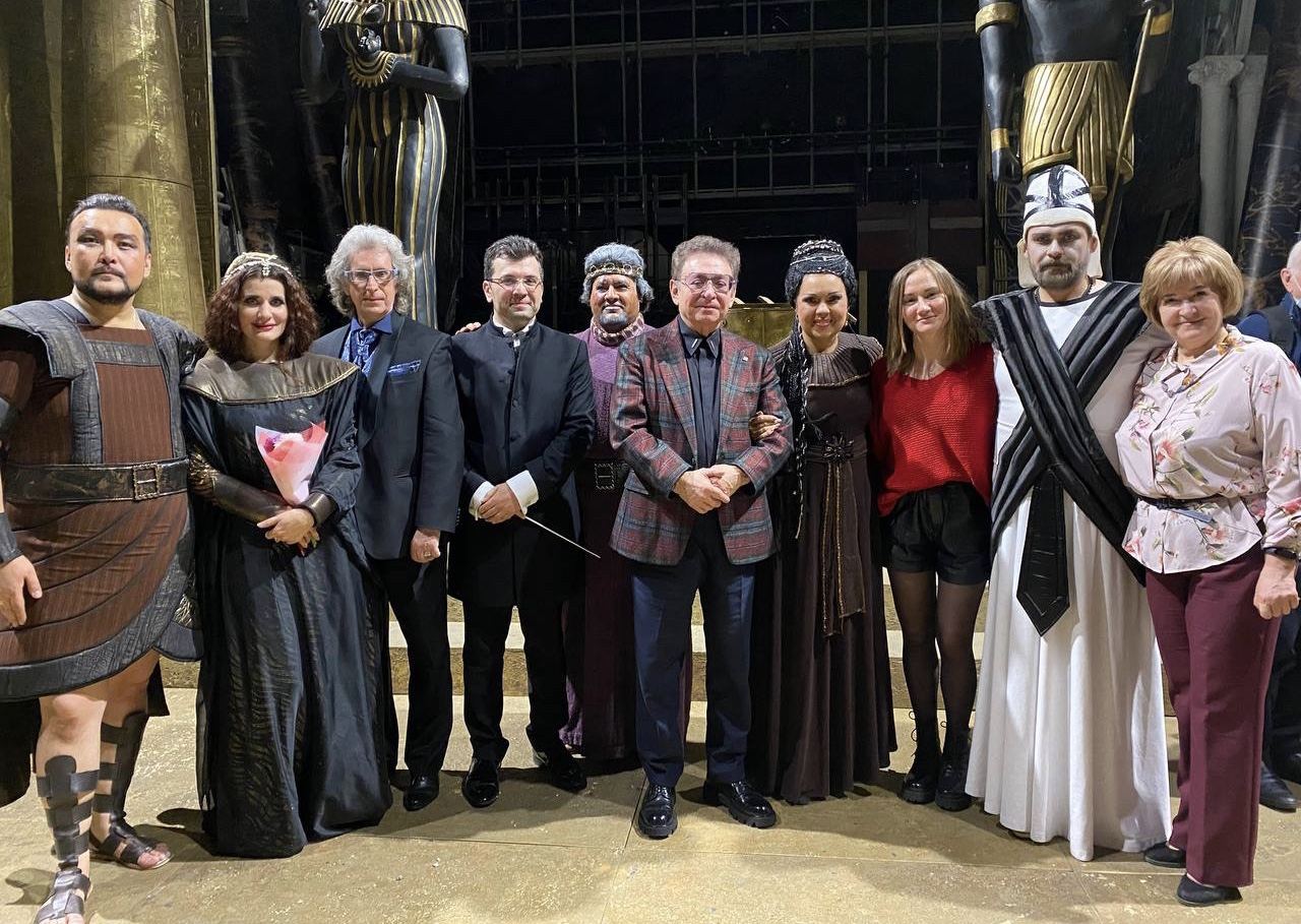 Ведущие партии исполняли известные оперные певцы, солисты различных оперных театров мира, в том числе народный артист Азербайджана, солист Национальной оперы Мангейма (Германия), баритон Аваз Абдуллаев. Народный артист Азербайджана исполнил партию Амонасро.