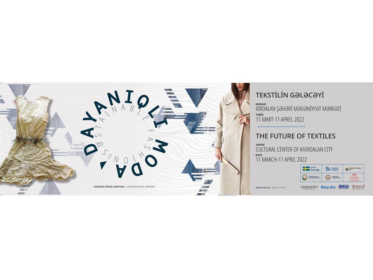 БАКУ /Trend Life/ - В Доме культуры города Хырдалан 11 марта в 18.00 откроется выставочный проект "Устойчивая мода: будущее текстиля", организованный исполнительной властью Абшеронского района и муниципалитетом города Хырдалан совместно с посольством Швеции в Азербайджане в сотрудничестве с региональным Управлением культуры города Сумгайыт, сообщает Trend Life.