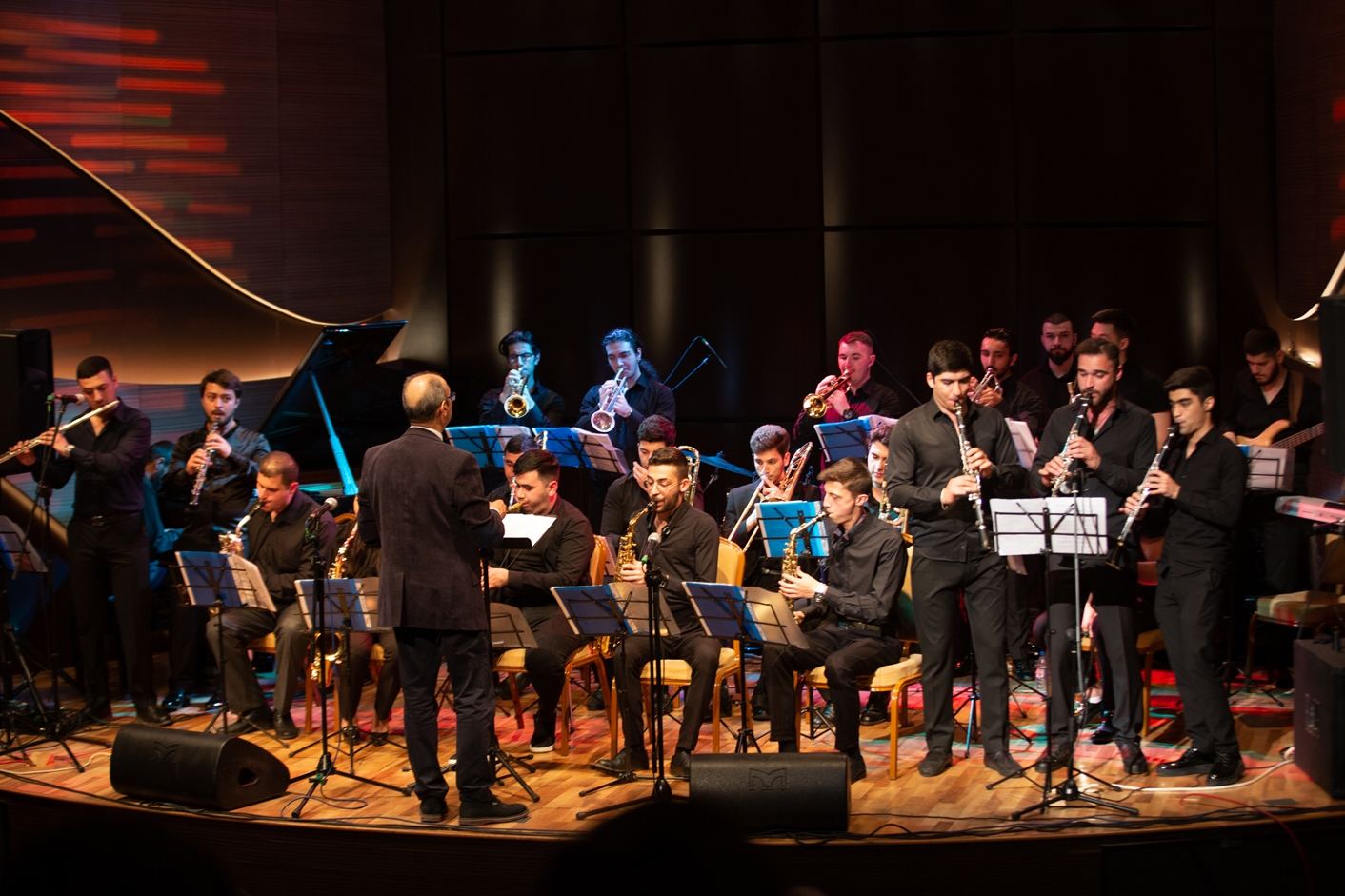 Baku Brass Big Band начал вечер с праздничной увертюры - попурри из известных произведений азербайджанских композиторов Тофига Гулиева, Рауфа Гаджиева, Васифа Адыгезалова, Полада Бюльбюльоглу, а также исполнил композицию Гара Гараева. Прозвучали популярные мировые джазовые стандарты Уильяма Хэнди, Херби Хэнкока, Астора Пьяццоллы, Пабло Руиса. Впервые была представлена композиция солиста группы Сеймура Алиева "Roll Five". А завершился вечер пьесой Алибалы Рзаева "Zəfər sevinci" (Радость Победы).