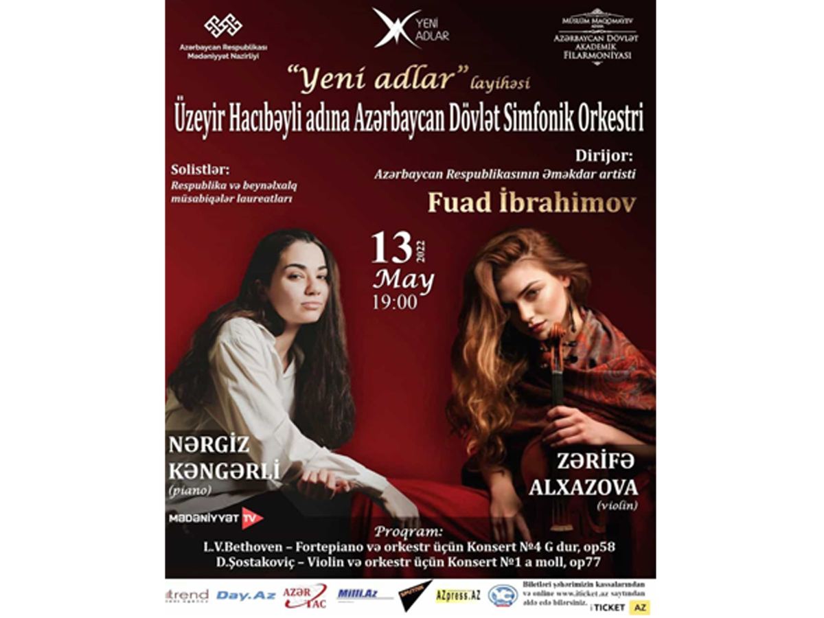 Лауреаты международных конкурсов, преподаватели Бакинской музыкальной академии имени Узеира Гаджибейли Наргиз Кенгерли (пиано) и Зарифа Алхазова (скрипка) выступят в сопровождении Азербайджанского государственного симфонического оркестра имени Узеира Гаджибейли под управлением заслуженного артиста Фуада Ибрагимова.
