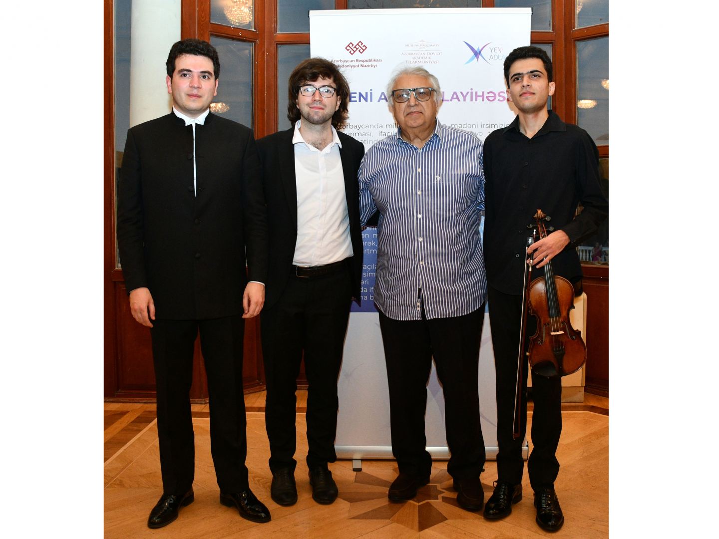 В рамках проекта для молодых дарований создается возможность выступать с интересными концертными программами в сопровождении Государственного симфонического оркестра имени Узеира Гаджибейли, Государственного камерного оркестра имени Гара Гараева и Государственного оркестра народных инструментов.