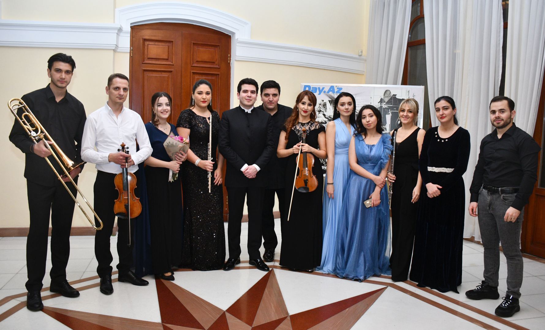Солистами программы выступили молодые музыканты оркестра – исполнители на флейте Амина Зульфугарова и Наргиз Алиева, скрипачи Сабина Гулиева, Айдан Саламова, Айтадж Рзаева, Айтадж Кара, Камран Мирзоев, исполнитель на альте Сабухи Ахундов, виолончелисты Тахмина Худузаде и Эсмер Керимли, кларнетист Шариф Багиров, исполнитель на валторне Агасамед Гасанов и исполнитель на тромбоне Немят Танрывердиев, которые представили слушателям красочную и разнообразную концертную программу.