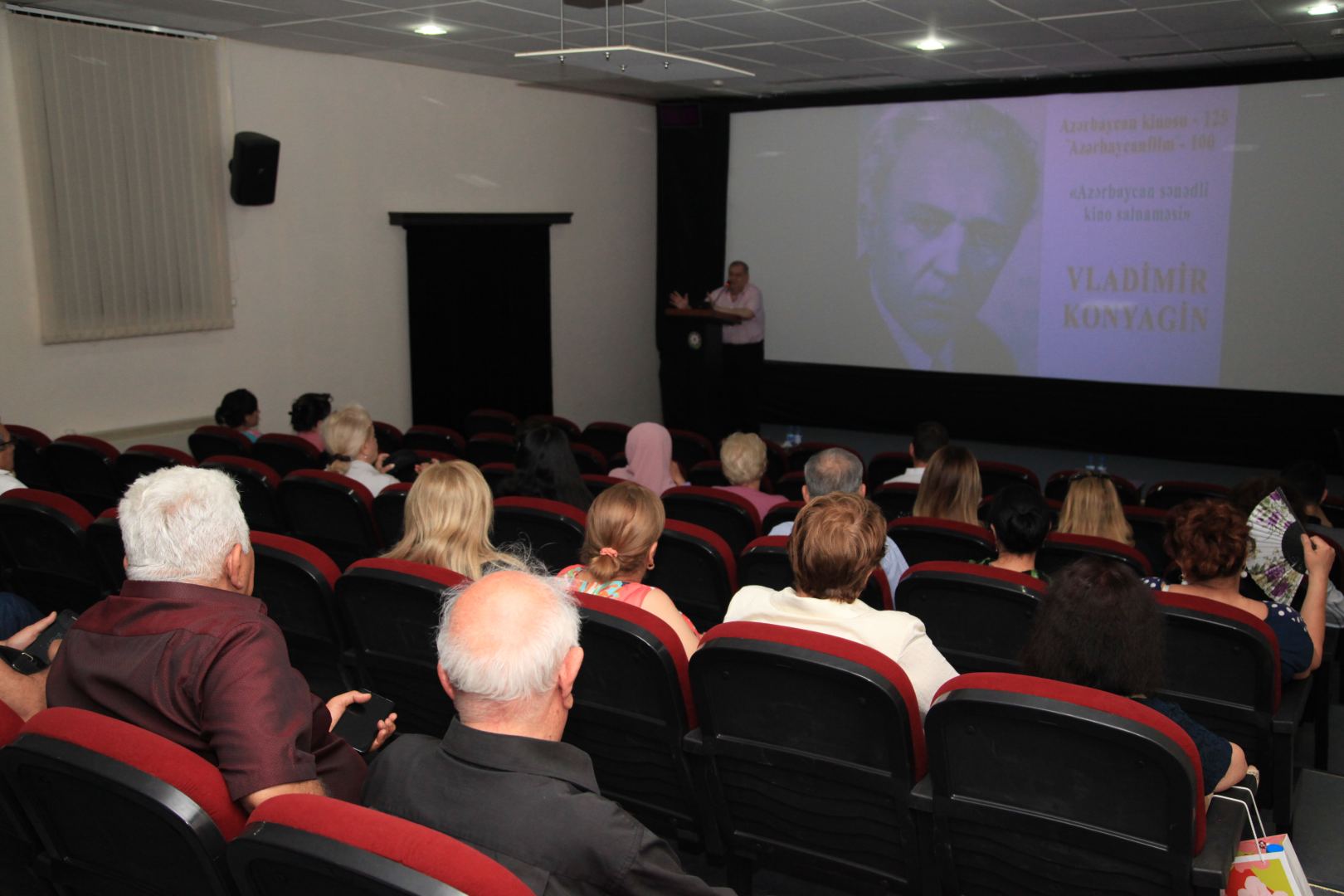 Далее заслуженный деятель искусств, профессор Рафиг Гулиев рассказал о совместной работе с Конягиным, подчеркнув, что тот помог овладеть ему профессиональными навыками в области операторского искусства.