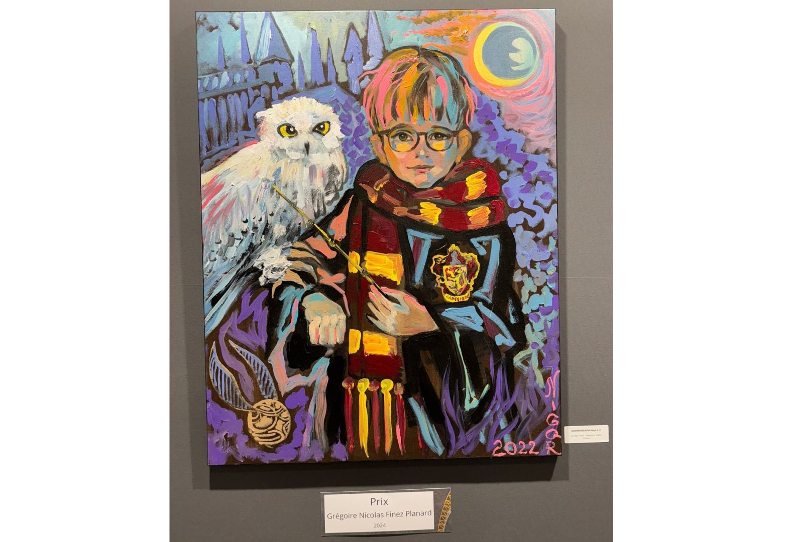 Произведение экспонируется в Гран-Пале-Эфемер на Салоне французских художников в рамках международной выставки современного искусства Art En Capital 2024. Решением и тайным голосованием 15 членов Академии художеств Франции работа "Тариэль - маленький Гарри Поттер" удостоена приза "Gregoire Nicolas Finez Planard 2024" (награда имени французского художника середины 20 века Грегуара Николя Финеса).