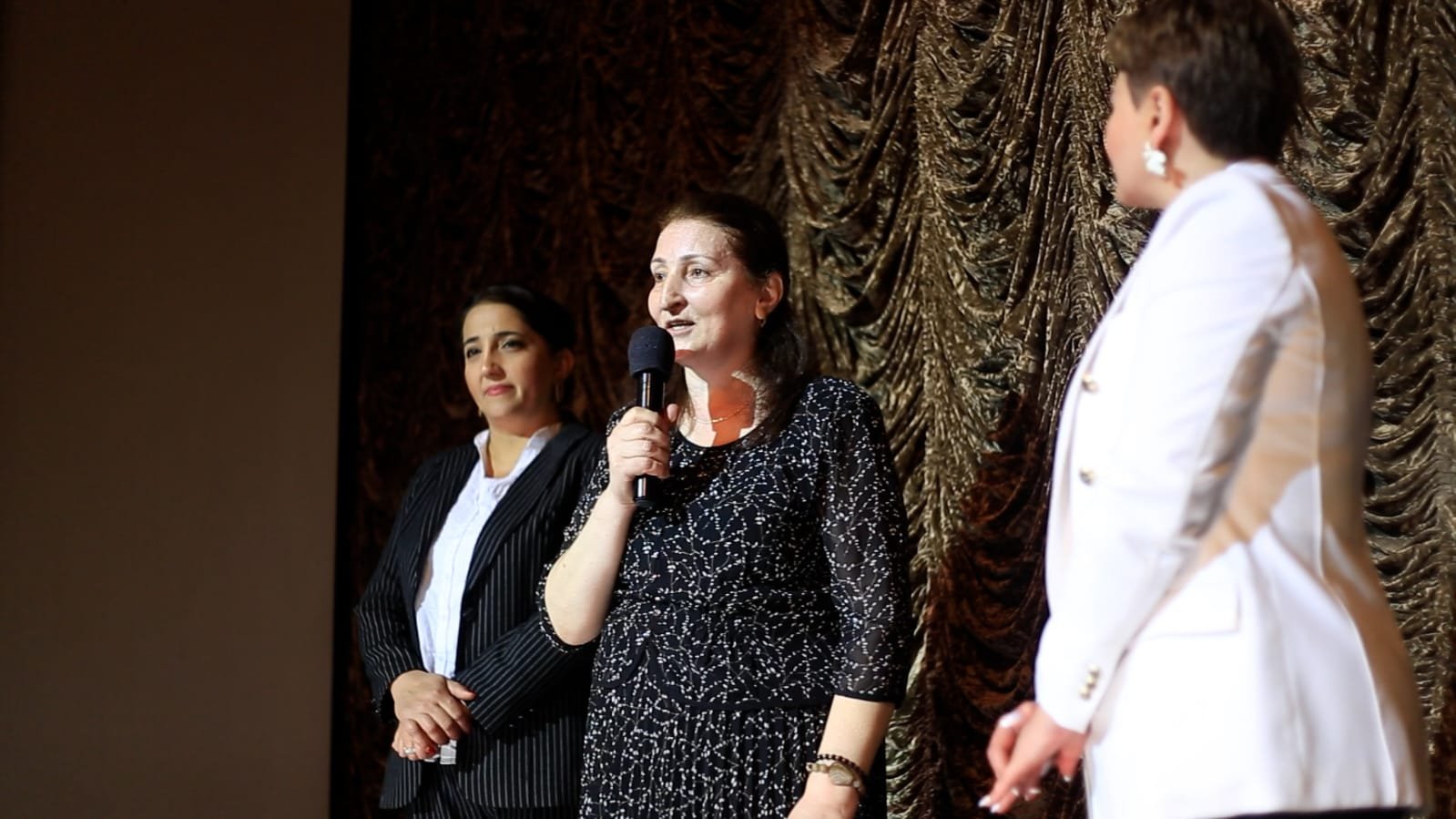 После показа, который был встречен юными зрителями с большим интересом, выступили дочь Ханыманы Алибейли, профессор Гюляр Абдуллабейли и координатор родительского объединения UAFA Захра Халафова, которые рассказали о важности поведения подобных мероприятий.