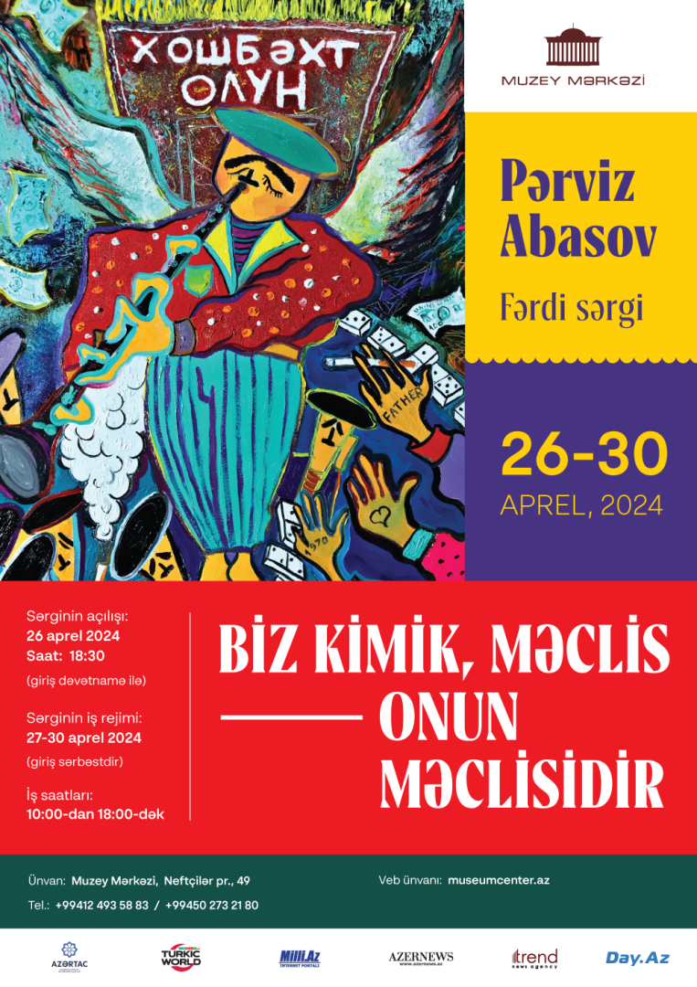 Согласно концепции, открытие выставки планируется начать оригинальным шоу, начало которому даст демонстрация фрагмента из фильма "Газельхан", рассказывающего о жизни Алиаги Вахида, в котором и прозвучат строки из стиха "Biz kimik, məclis onun məclisidir", нашедшие свое отражение и в названии выставки Пярвиза Абасова. Во вступительной части открытия на фоне музыки из этого фильма пройдет перформанс от 4 или 6 актеров, которые будут изображать созданных художником персонажей в красочных костюмах. После чего пройдет торжественное открытие выставки.