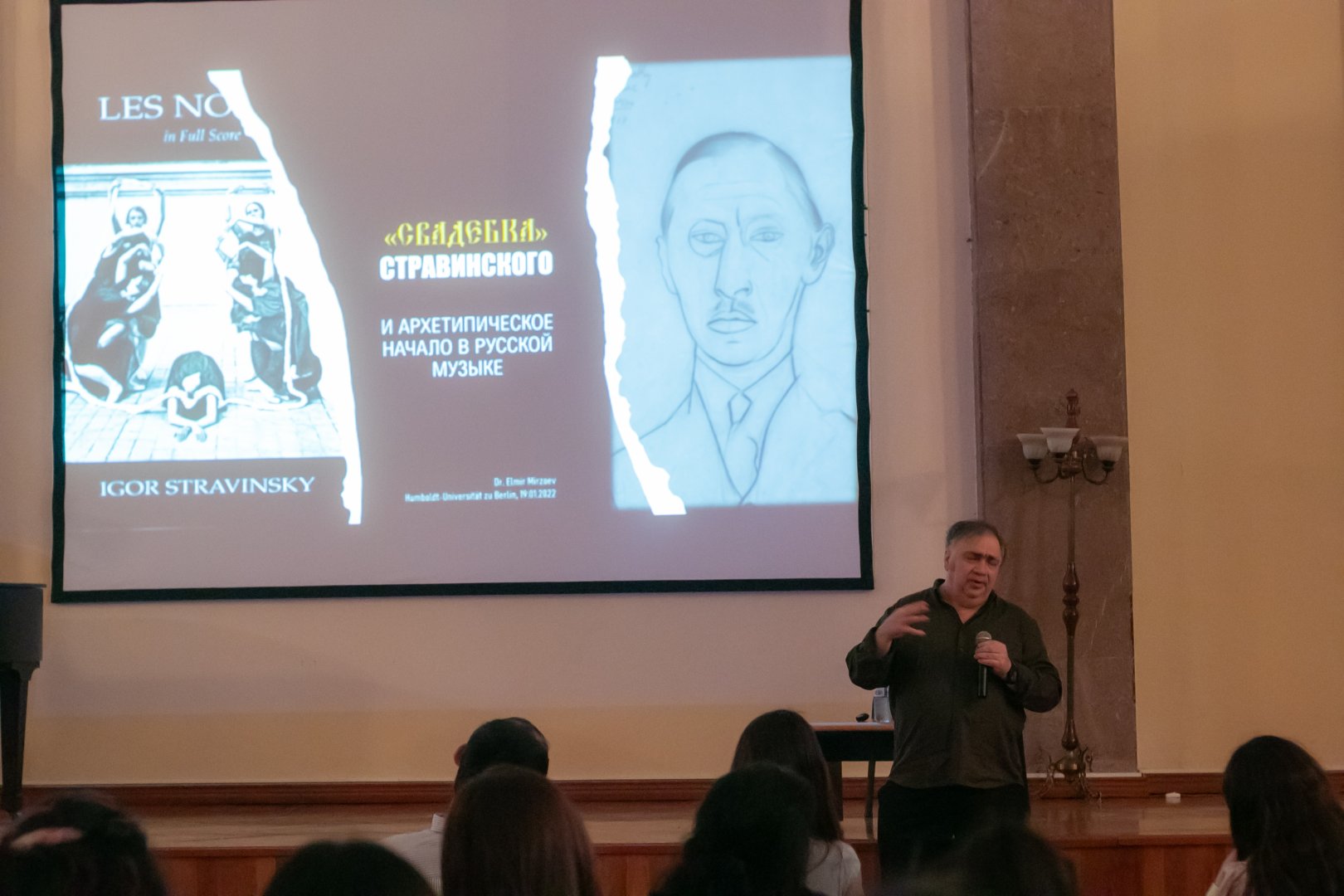 Эльмир Мирзоев рассказал о произведении "Свадебка", представленном Игорем Стравинским на премьере в Париже в 1923 году, историческом и эстетическом контексте произведения, а также о его месте в культурной истории. В заключении он ответил на вопросы аудитории.