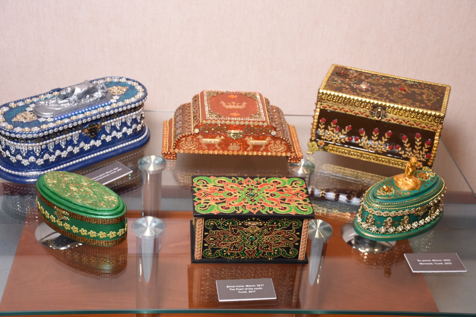 Затем гости ознакомились с интересными произведениями семьи Сардарлы. Образцы декоративно-прикладного искусства, сундуки, медальоны, украшения и другие произведения, выполненные в уникальном стиле, воспевающем исторические памятники архитектуры, жемчужины культурного наследия Западного Азербайджана, поразили своим национальным колоритом и оригинальностью.