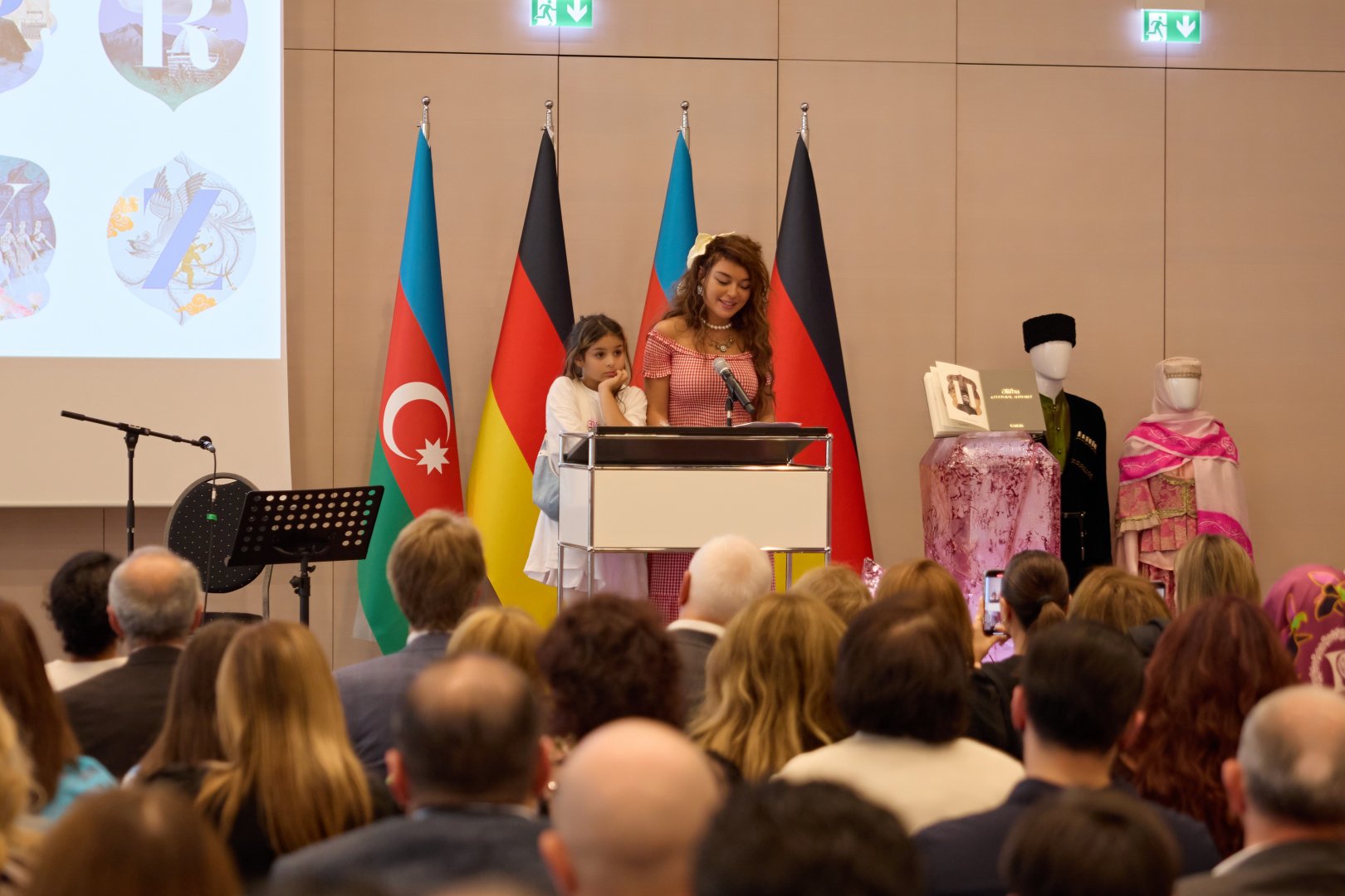 Посол Азербайджана в Германии Насими Агаев и главный редактор журнала NARGIS Ульвия Махмуд поприветствовали гостей и пригласили их к просмотру фильма "History in Letters" – документальной анимационной драмы, которая знакомит зрителей с азербайджанской культурой и историей сквозь призму алфавита. Это не просто документальный мультфильм, а философский поиск, который погружает зрителя в исследование истины и силы любви к искусству. Над фильмом работали: режиссер Меран Исмаилсой, сценарист Агамехти Абидов, анимационный художник Кянан Шейхзаманлы. Спонсором данного анимационного фильма выступила компания bp.