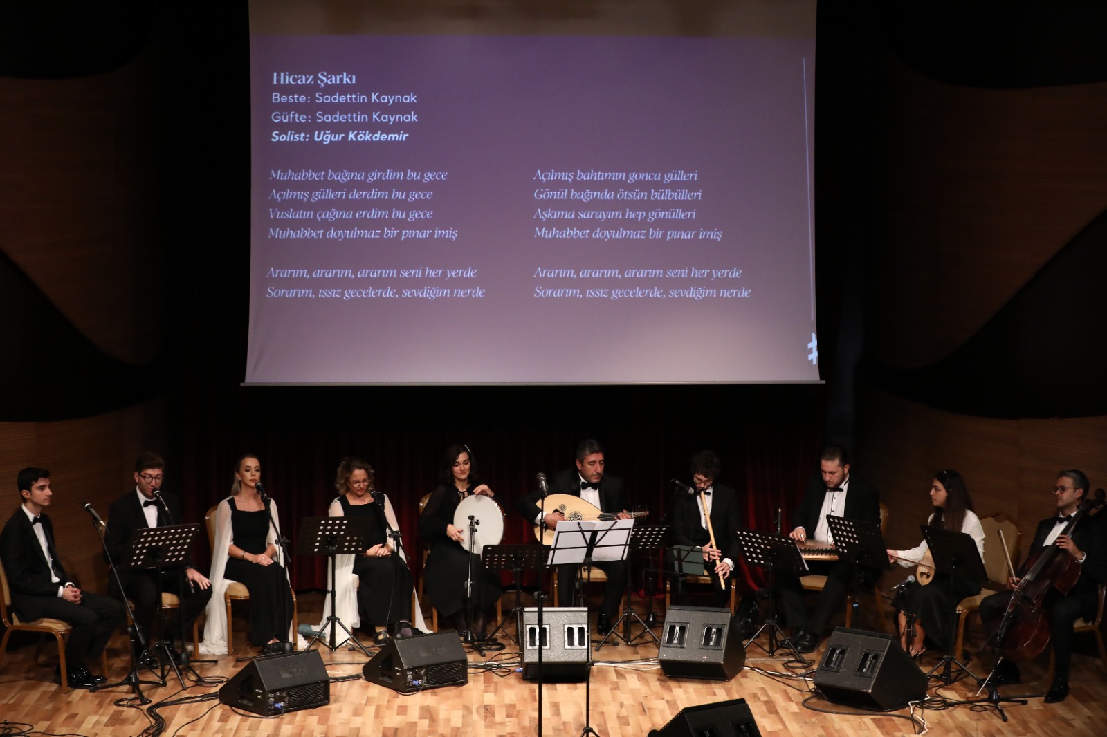 В концертной программе известный турецкий солист Бурджу Гёктюрк в сопровождении ансамбля исполнил произведения известных представителей турецкой классической музыки - Салахаддина Пинара, Садеттина Кайнака, Мунира Нуреддина Сельчука и Авни Аныла. Кроме того, на концерте были исполнены известные азербайджанские песни. Ведущей вечера была Кямиля Бабаева.
