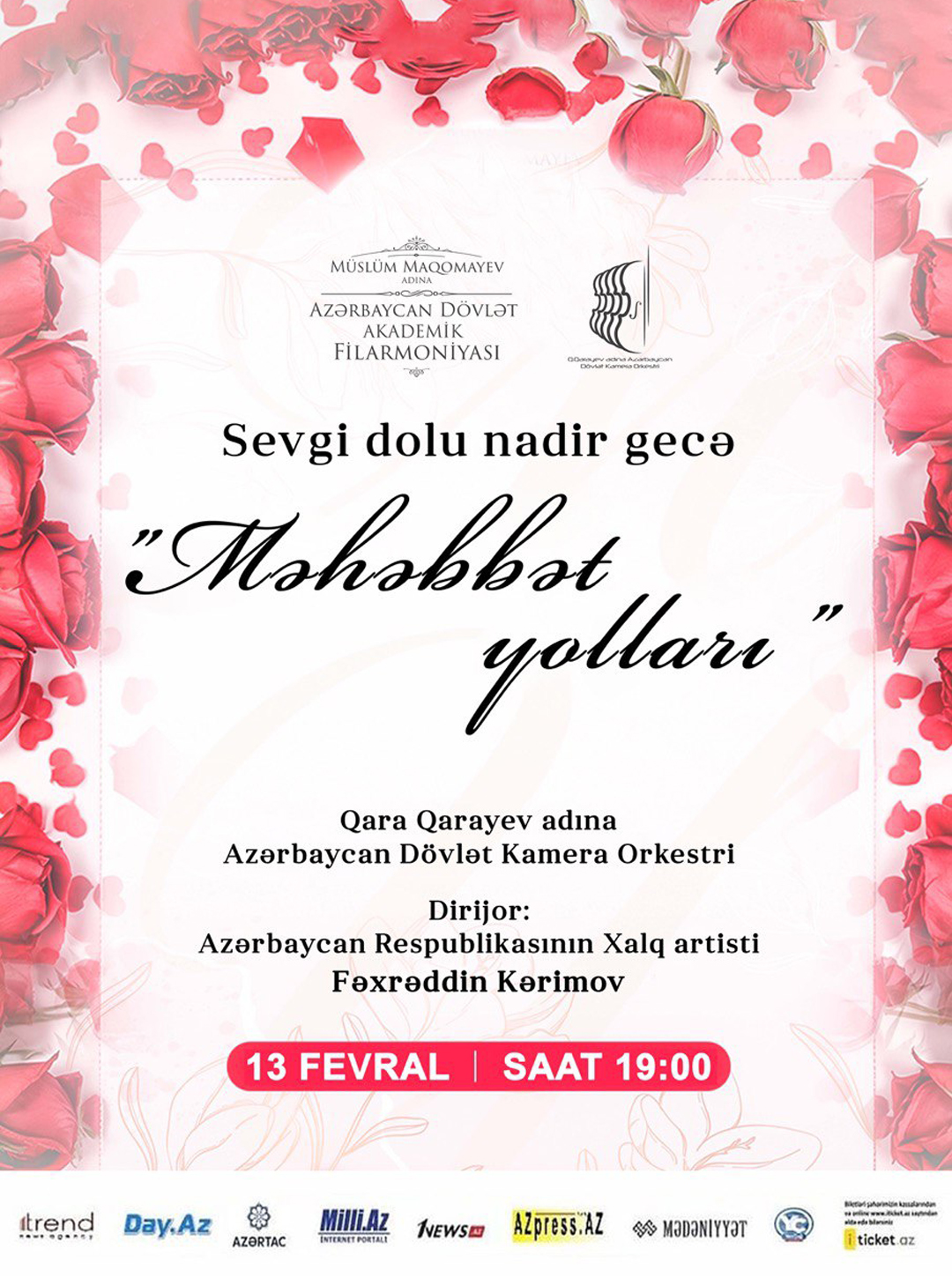 БАКУ /Trend Life/ - В Азербайджанской государственной академической филармонии имени Муслима Магомаева 13 февраля в 19.00 состоится концерт "Дороги любви", приуроченный ко Дню влюбленных, сообщает Trend Life. В программе любимые композиции и нежная музыка в исполнении лучших музыкантов страны.