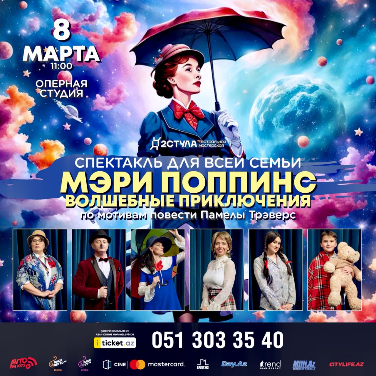 Для приобретения билетов: https://iticket.az/ru/events/kids/mary-poppins-magical-adventures/139837