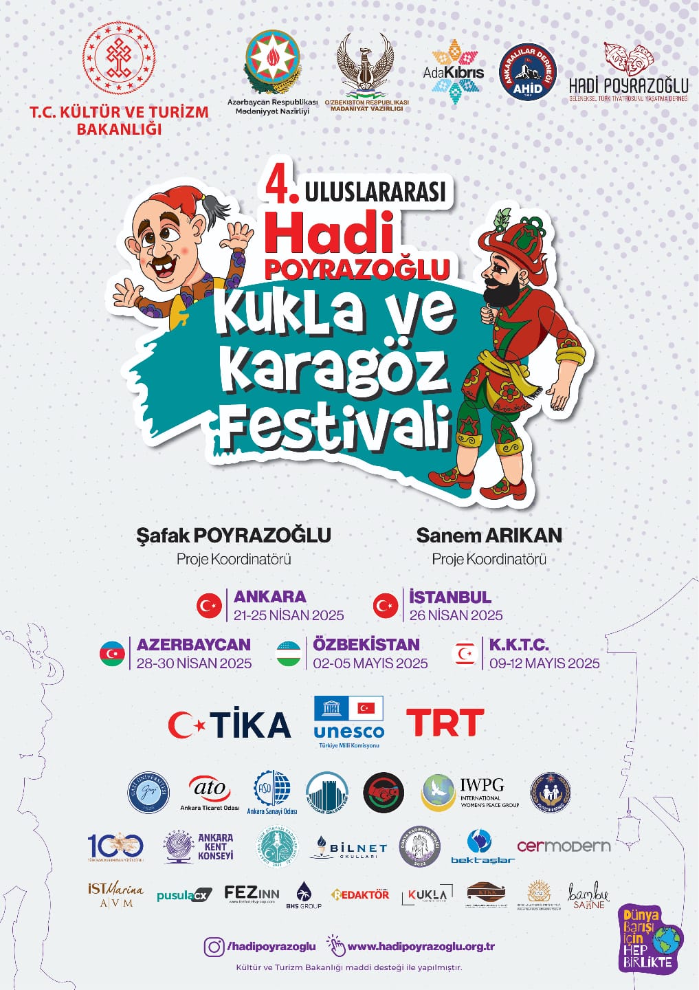 Поддержку в организации фестиваля оказывают Министерство культуры и туризма Турции, Национальная комиссия Турции по делам ЮНЕСКО, Турецкое агентство по сотрудничеству и координации (TİKA), а также Министерство культуры Азербайджана и Азербайджанский государственный кукольный театр. Основная цель проекта - собрать мастеров кукольного искусства из разных стран, продвигать национальные традиции театров кукол и теней на международной арене, а также заложить основу для новых совместных проектов.