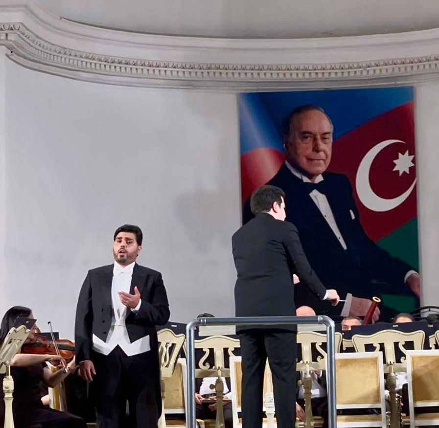 Затем солист Атеш Гараев (тенор) исполнил романс Асафа Зейналлы "Моя страна" и песню Рауфа Гаджиева "Мой Азербайджан" под управлением дирижёра Муртузы Бюльбюля. Также прозвучала обработка мугама "Баяты-Шираз" Назима Аливердибекова.