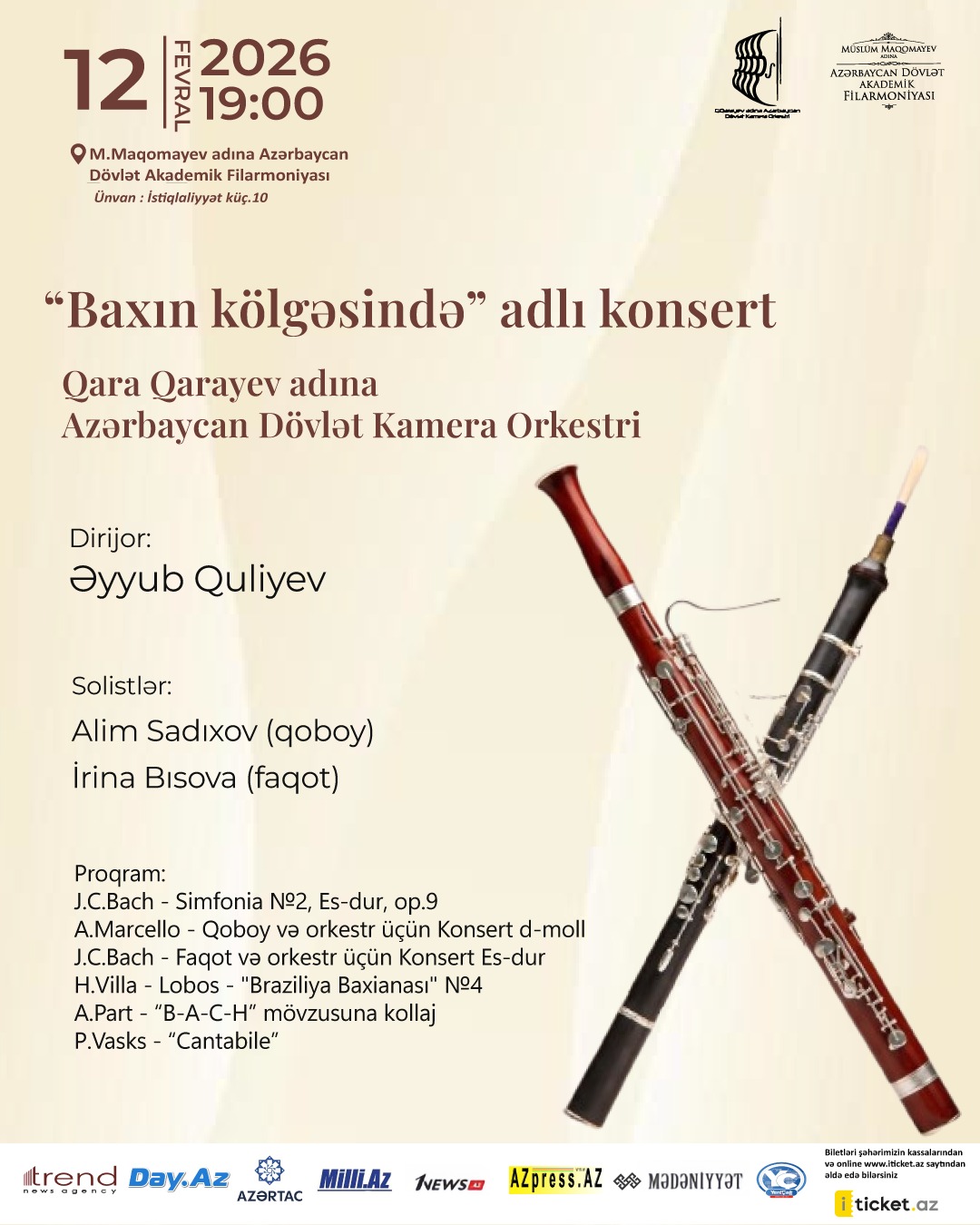 БАКУ /Trend Life/ - 12 февраля в 19:00 в Азербайджанской государственной академической филармонии имени Муслима Магомаева состоится музыкальный вечер "В тени Баха" для истинных ценителей классики. Концерт пройдет под управлением дирижёра, заслуженного артиста Эйюба Гулиева в сопровождении Азербайджанского государственного камерного оркестра имени Гара Гараева, сообщили Trend Life в пресс-службе филармонии.