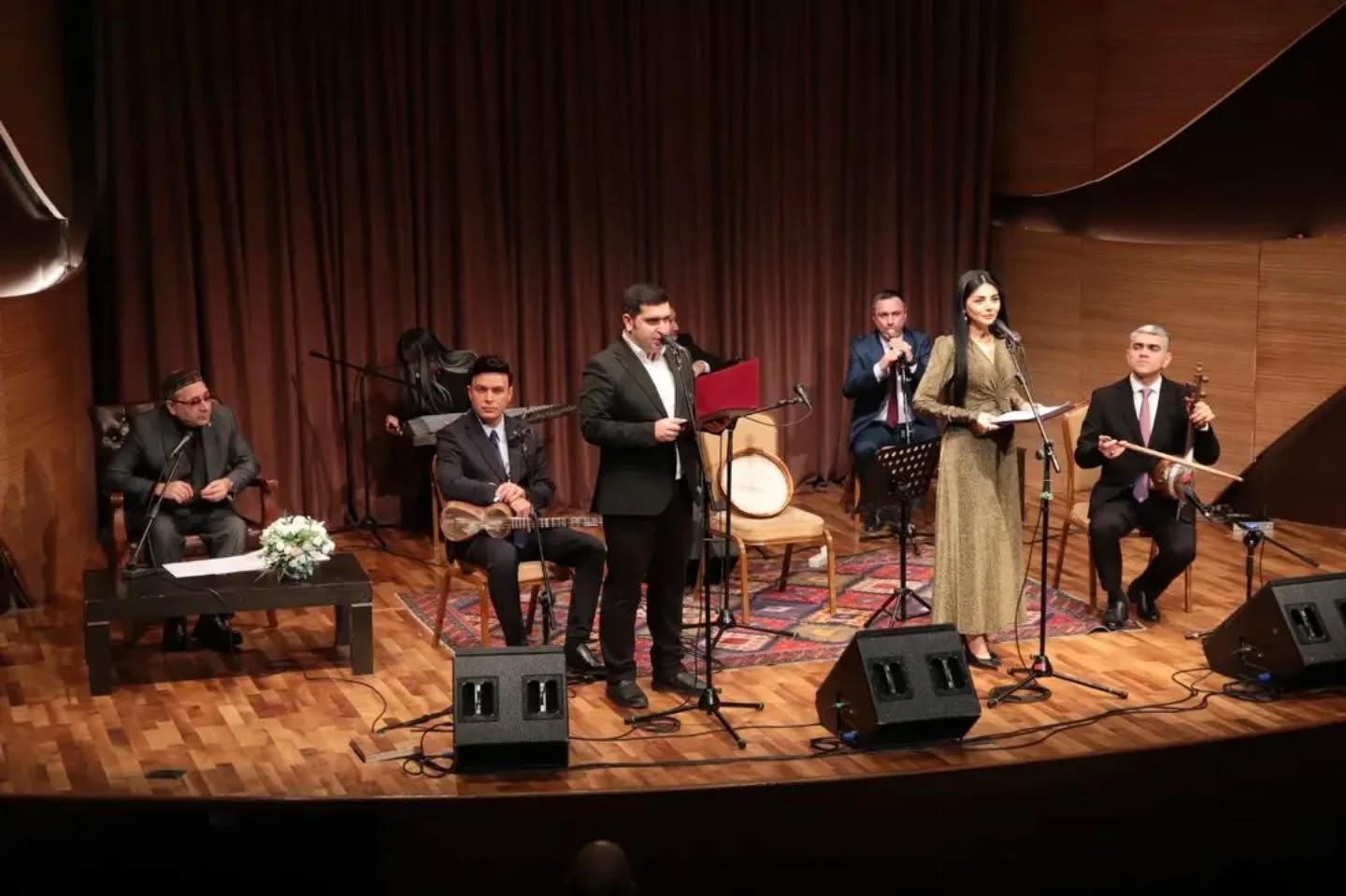 В концертной программе солисты представили мугамные композиции на газели Алишера Навои, раскрывая богатство и глубину его поэтического наследия. Перед зрителями выступили ханенде Сархан Буньядзаде, Эльгиз Алиев, Нисбет Садраева, Айтадж Бейбалaева и Ряван Гачaев. Художественное слово прозвучало в исполнении чтецов Гусейнаги Асланова и Сямрай Алиевой, представивших фрагменты из произведений поэта.